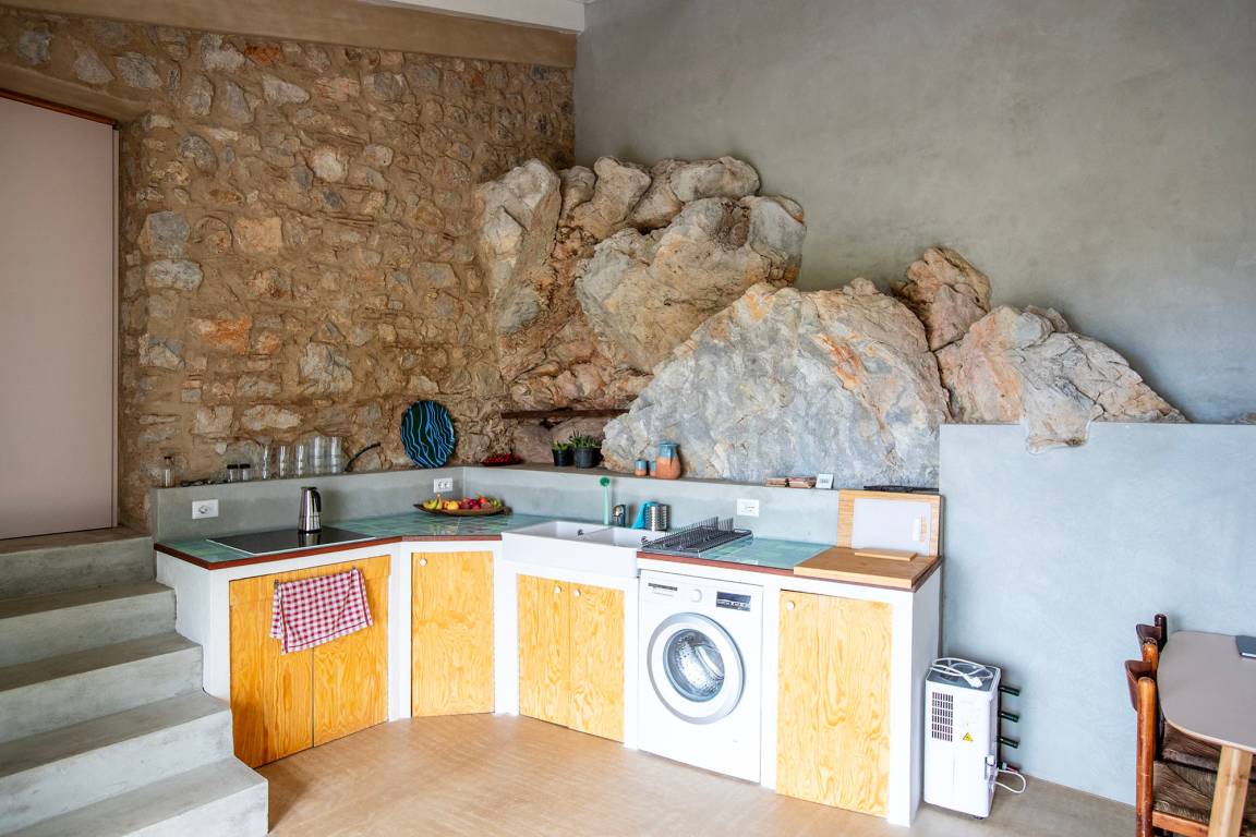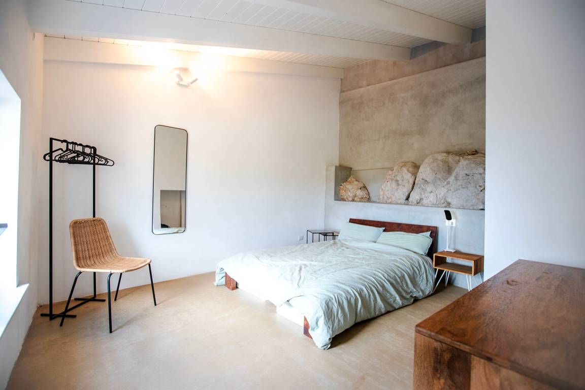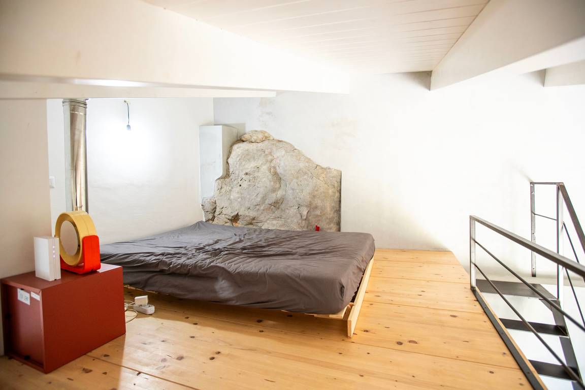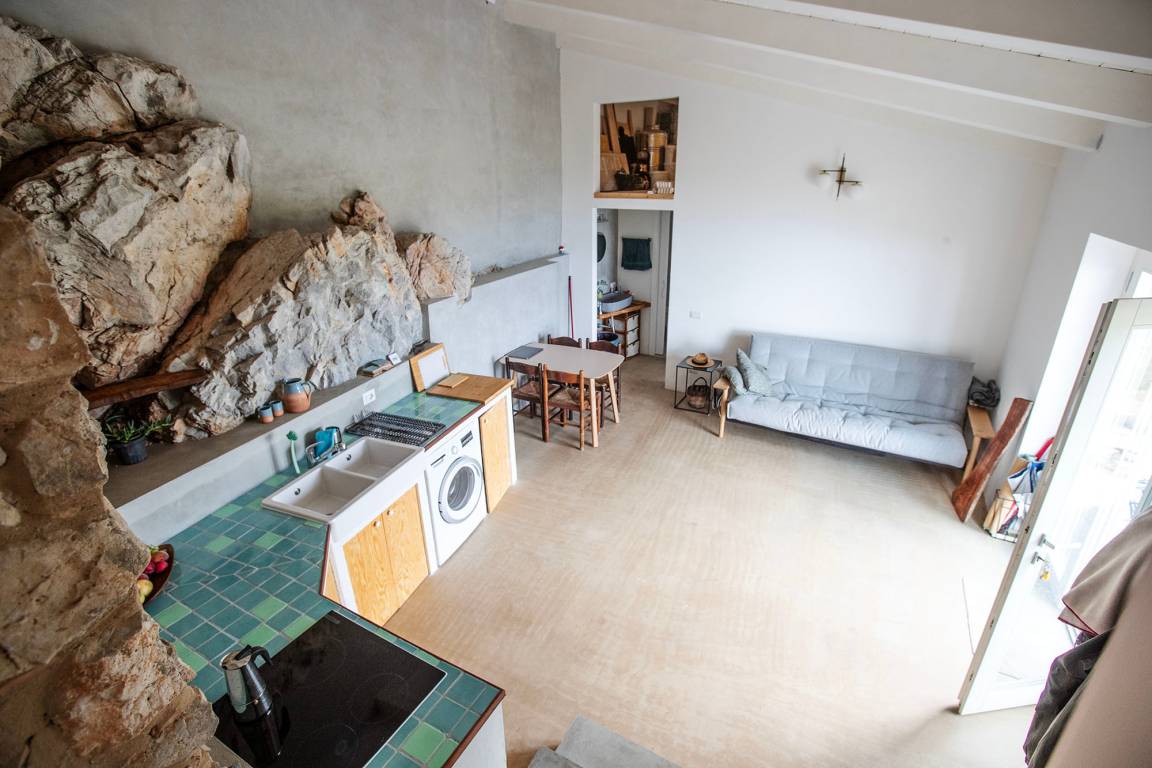 La Casa dell'Upupa is the heartfelt project of its owners, who live in Germany, and was born after several years of reconstruction and renovation works on former plain stables. What catches your eye immediately upon entering the holiday home, are the rocks protruding from the wall. They form the natural back of the house and have been deliberately integrated into the rooms.