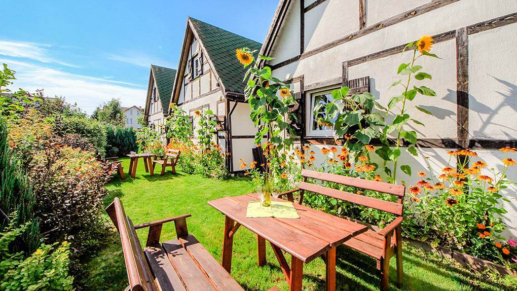 Ort: Dabki (Neuwasser). Ruhige Lage im Grünen. Ostseestrand 550 m. Lebensmittelladen 200 m. Geschäfte, Restaurants 400 m. Hotelhallenbad mit Wellnessbereich 400 m. Tennisplatz 500 m. Bukowosee mit Paddelboot-, Surfbrett-, Kajakverleih, Kitesurfing 950 m. Aquapark Darlowo 9 km. Mielno 35 km.