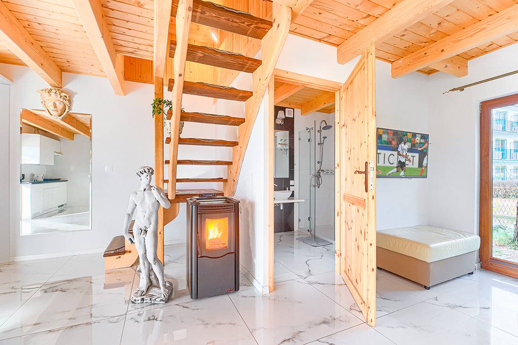 Nebenkosten Strom nach Verbrauch (3 Zl./kWh). Kurtaxe. Bettwäsche vorhanden. Handtücher mitzubringen. Zusätzliche Leistungen Fahrräder leihbar (nach Verfügbarkeit). 1 Pkw-Stellplatz im Preis inklusive. Kostenloser Internetzugang über W-Lan. Pellets für Kamin nach Verbrauch. Kaution 450 Zl. Haustier 30 Zl./Tag, max. 4 Hunde (Anmeldung). Die Nebenkosten sind vor Ort beim Vermieter zu zahlen.Räume & Aufteilung
