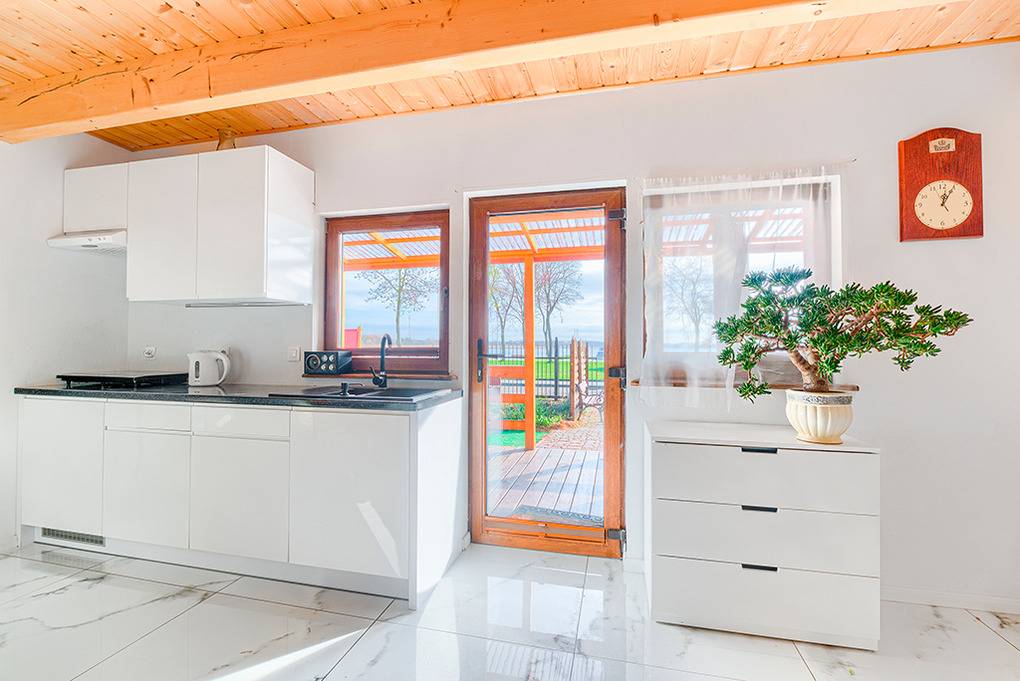 Haus: Kleine Ferienhausanlage mit fünf schönen Ferienhäusern auf einem Rasengrundstück (1.450 qm) mit lichtem Kieferbewuchs. Gemütliche, gepflegte Ferienhäuser mit schönem Balkon und herrlichem Blick auf den Bukowosee. Freundliche Einrichtung. Kostenloses Internet über WLan. Heizung mit Kamin (auf Wunsch, Gebühr) und E-Radiatoren. Warmwasser über E-Boiler (60 l). Terrasse mit Sitzmöbeln, Grill. In der Anlage: Kinderspielplatz mit Rutsche, Schaukel, kleinem Klettergerüst. 1 Parkplatz/Ferienhaus im Mietpreis inklusiv. Hinweis: die maximale Personenzahl darf sechs nicht überschreiten.