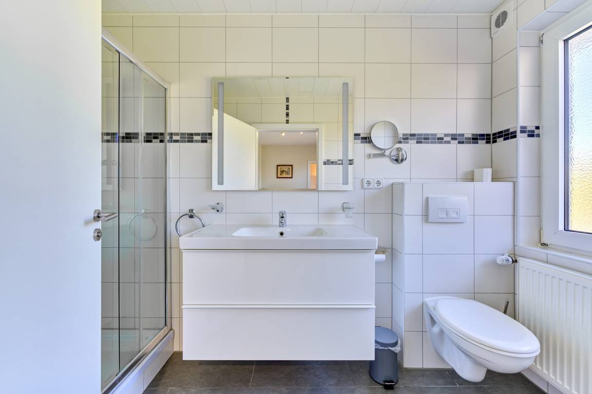 ausgestattet. Das Badezimmer verfügt über Dusche, WC und Föhn.