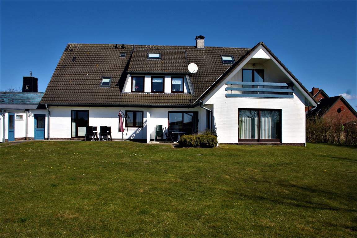 Dieses kuschelige Nest liegt im 2.Stock und ist für eine Person geeignet. Die Wohnung hat auf knapp 20 qm alles, was man braucht: ein großes Bett, Küchenzeile, Tisch mit Stühlen und Dusche; WC. Vom großen Dachfenster kann man über den Deich auf die Halligen blicken.