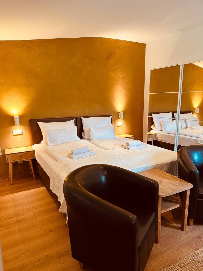 Das Zimmer ist ausgestattet mit WLan, Sat-TV, Wasserkocher mit Tee-Variationen. Handtücher und Bettwäsche sind inklusive.