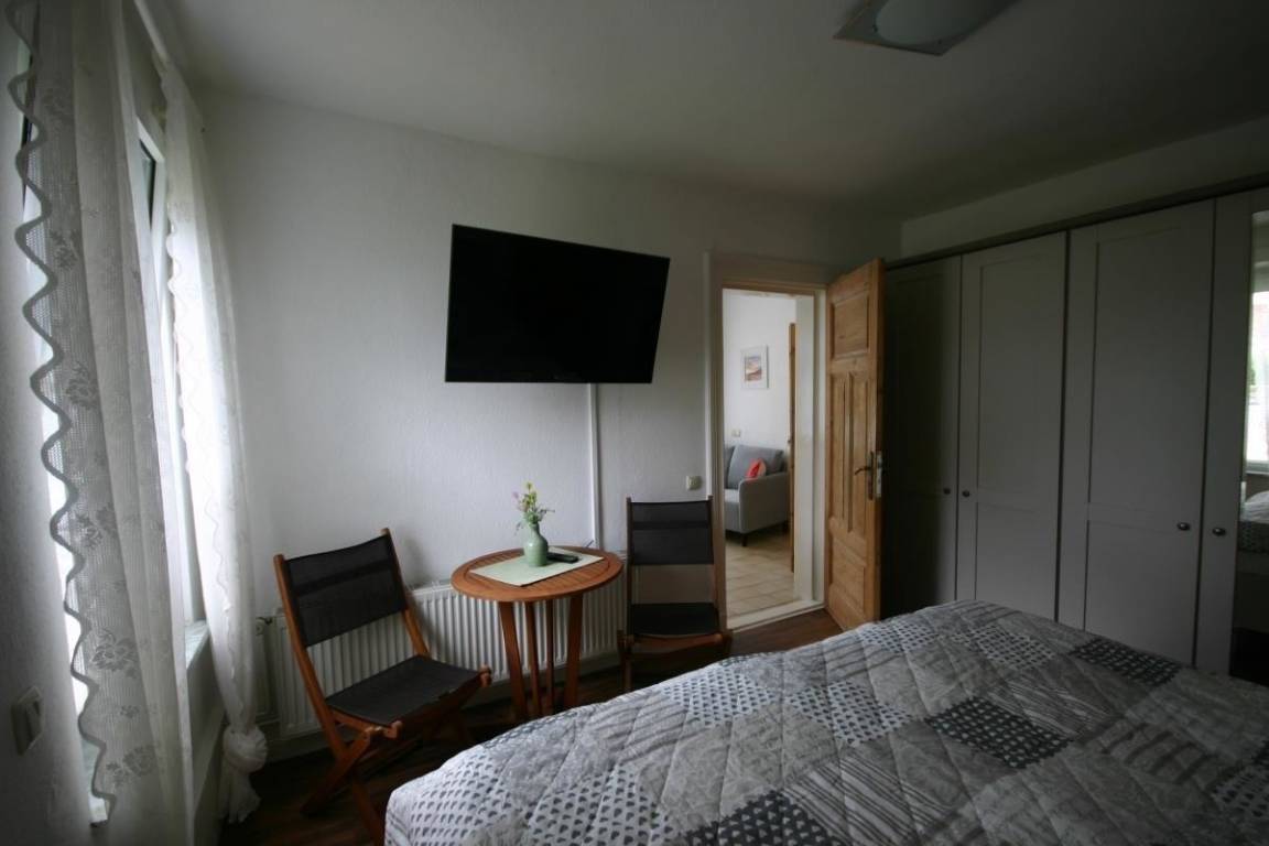 Das Appartement I befindet sich im Erdgeschoss und bietet eine ruhige, gemütliche Atmosphäre. Es verfügt über zwei separate Schlafzimmer, eines mit einem Doppelbett (180x200) und das andere mit zwei Einzelbetten (90x200), beide ausgestattet mit TV. Die Wohnküche ist voll ausgestattet mit einem Ceran-Kochfeld, Backofen, Spüle, Kaffeemaschine, Toaster und einem Kühlschrank mit 3* Gefrierfach, was es ideal für kurze oder längere Aufenthalte macht. Das Duschbad ist mit einem Bidet ausgestattet. Waschmaschine und Trockner stehen im Vorflur und sind gegen eine Gebühr nutzbar. Einkaufsmöglichkeiten, darunter Edeka und eine Bäckerei, sowie der Strand sind in wenigen Gehminuten erreichbar. Ein Parkplatz für den PKW, ein Fahrradabstellplatz und ein Grillplatz sind hinter dem Haus vorhanden. Hunde sind gegen eine Gebühr von 10€/Tag erlaubt.