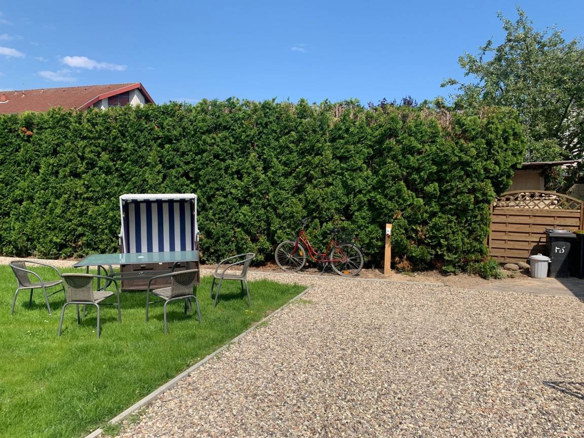 Der große ruhige Garten, Grill, Strandkorb und anderen Bequemlichkeiten geben gute Vorraussetzungen für einen Familienurlaub oder Entspannung zu zweit.
