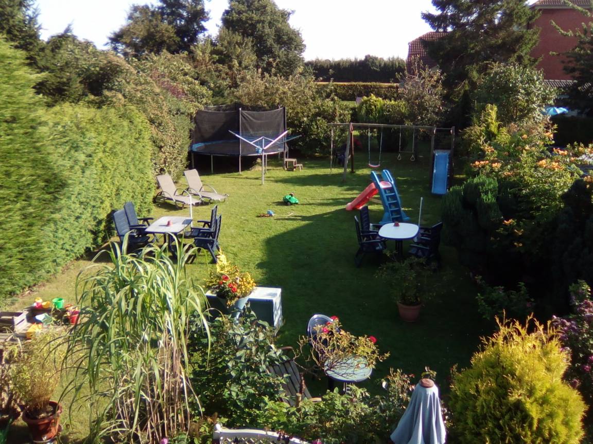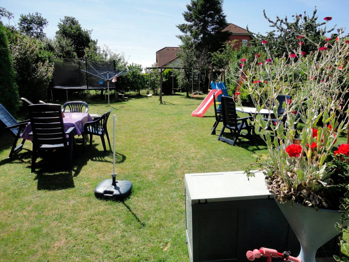 Waschmaschine u. Trockner im Haus. Grosser Garten mit Sitzecken Spielgeräten, Trampolin, Tischtennis u. Grill.