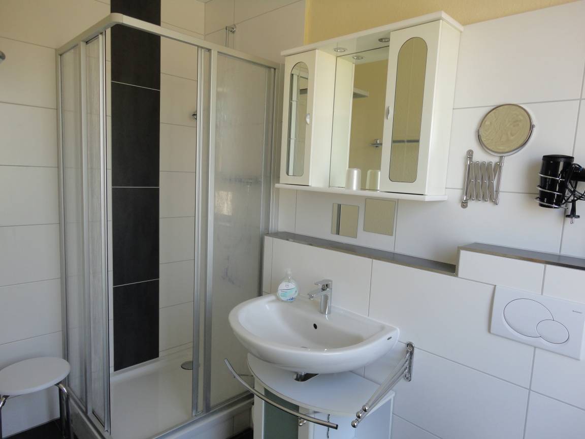 Schlafzimmer, Küche: Einbauküche. Dusche/WC, mit Fenster, Fön.