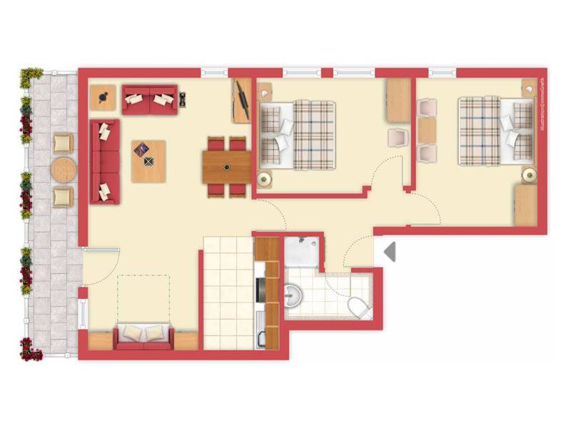 70 m² Ferienwohnung ∙ 2 Schlafzimmer ∙ 4 Gäste