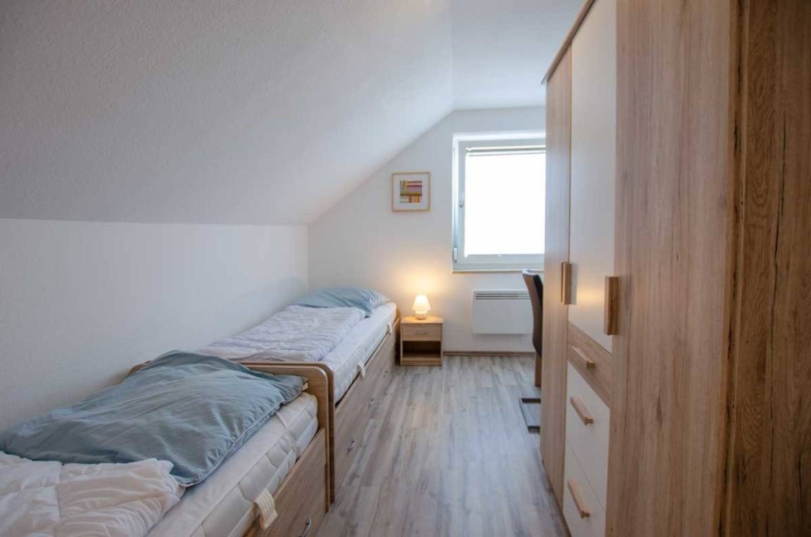 Im Obergeschoss finden Gäste ein separates Schlafzimmer mit Doppelbett und Kleiderschrank sowie ein separates Schlafzimmer mit zwei Einzelbetten.
