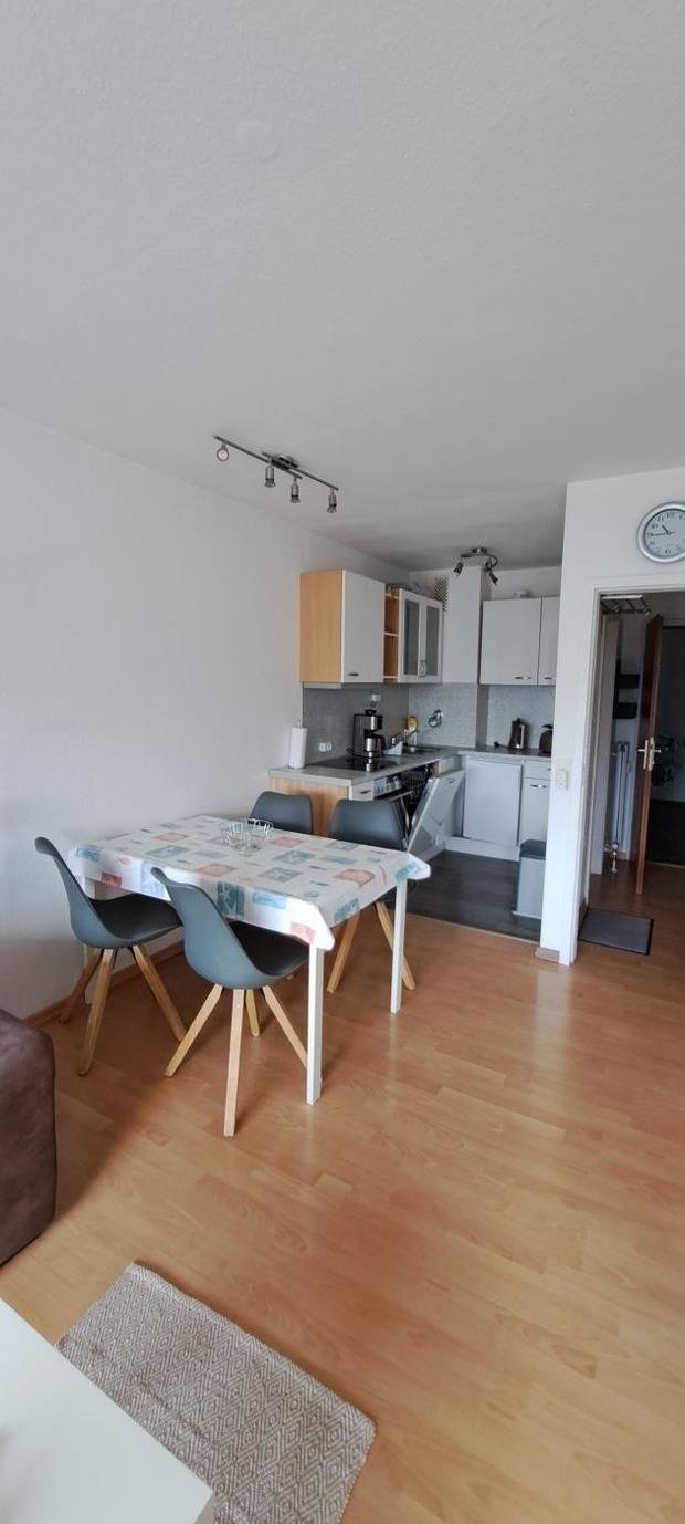 Die Ferienwohnung 24 im Appartementhaus Strandhotel bietet eine komfortable Unterkunft in der 3. Etage, die bequem mit dem Fahrstuhl erreichbar ist. Der Wohnschlafraum ist mit einem Schlafsofa ausgestattet und bietet ausreichend Platz. Das separate Schlafzimmer verfügt über ein Bett (140x200 cm). Die voll ausgestattete Küche beinhaltet einen Geschirrspüler und einen Backofen sowie eine Essecke für vier Personen. Unterhaltung wird durch einen Farb-TV mit USB-Anschluss gewährleistet. Das Badezimmer ist mit einer Dusche und einem WC ausgestattet. Zur gemeinschaftlichen Nutzung stehen im Haus ein Schwimmbad und eine Sauna zur Verfügung, die gegen Gebühr genutzt werden können. Zudem sind Waschmaschine und Trockner ebenfalls im Gebäude vorhanden. Ein möblierter Balkon mit Tisch, drei Stühlen und einer Liege bietet einen schönen Platz zur Abendsonne.