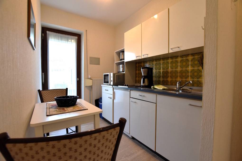 Die Küche ist voll funktionsfähig eingerichtet. Dusche/WC und ein Balkon sind vorhanden. Spielwiese, Grillplatz mit Gartenhäuschen und Parkplatz finden Sie am Haus. Leihbücher und Spiele stehen zur Verfügung.