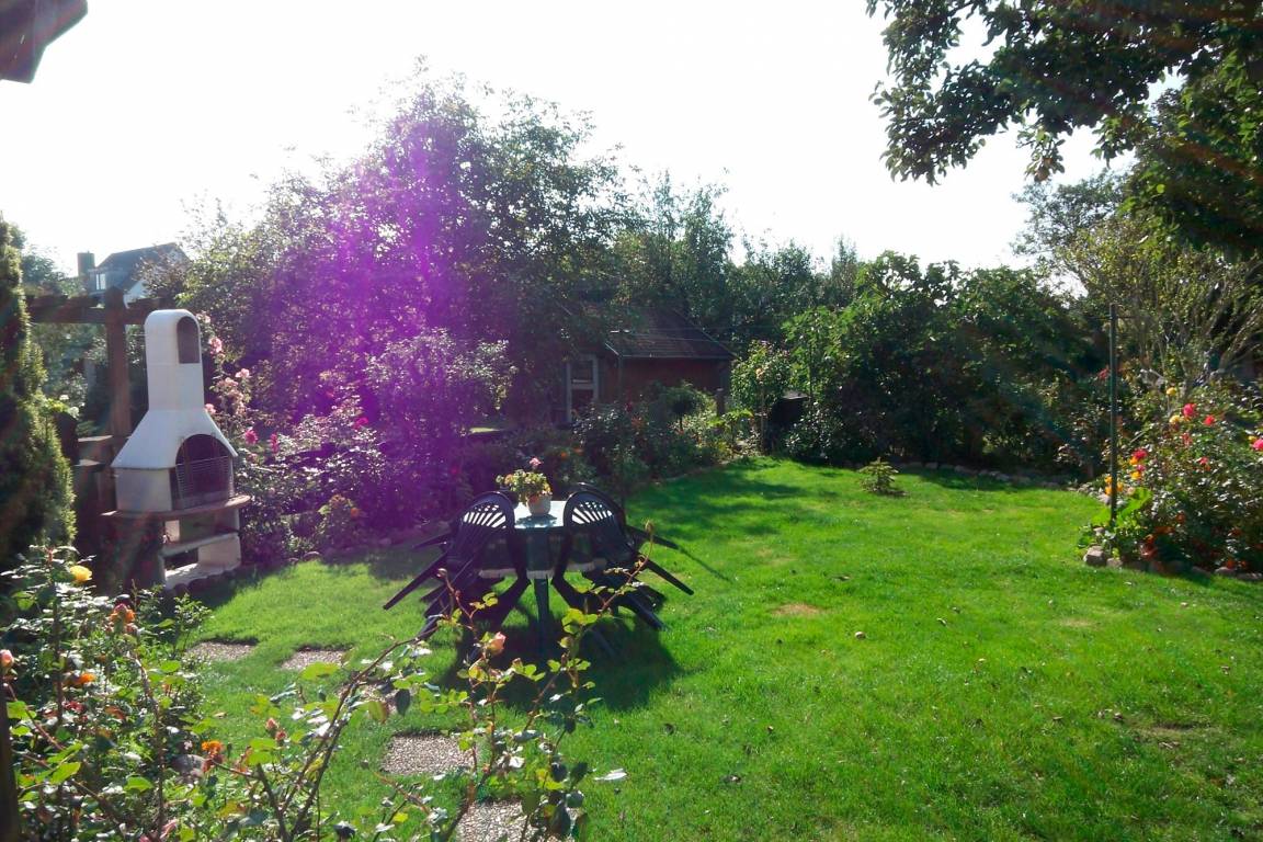 Unsere Ferienwohnung 1 in sehr strandnaher Lage ist für bis zu 4 Personen geeignet und bestehend aus einem Wohnschlafraum mit Klappbett (90 x 2,00m), einer Schlafcouch (1,10 x 2,00m) und 1 Fernseher, einem Schlafzimmer mit Doppelbett und 1 Fernseher, einer Küche mit Eckbank und Esstisch und einem Duschbad. Liegewiese mit Gartenmöbel.