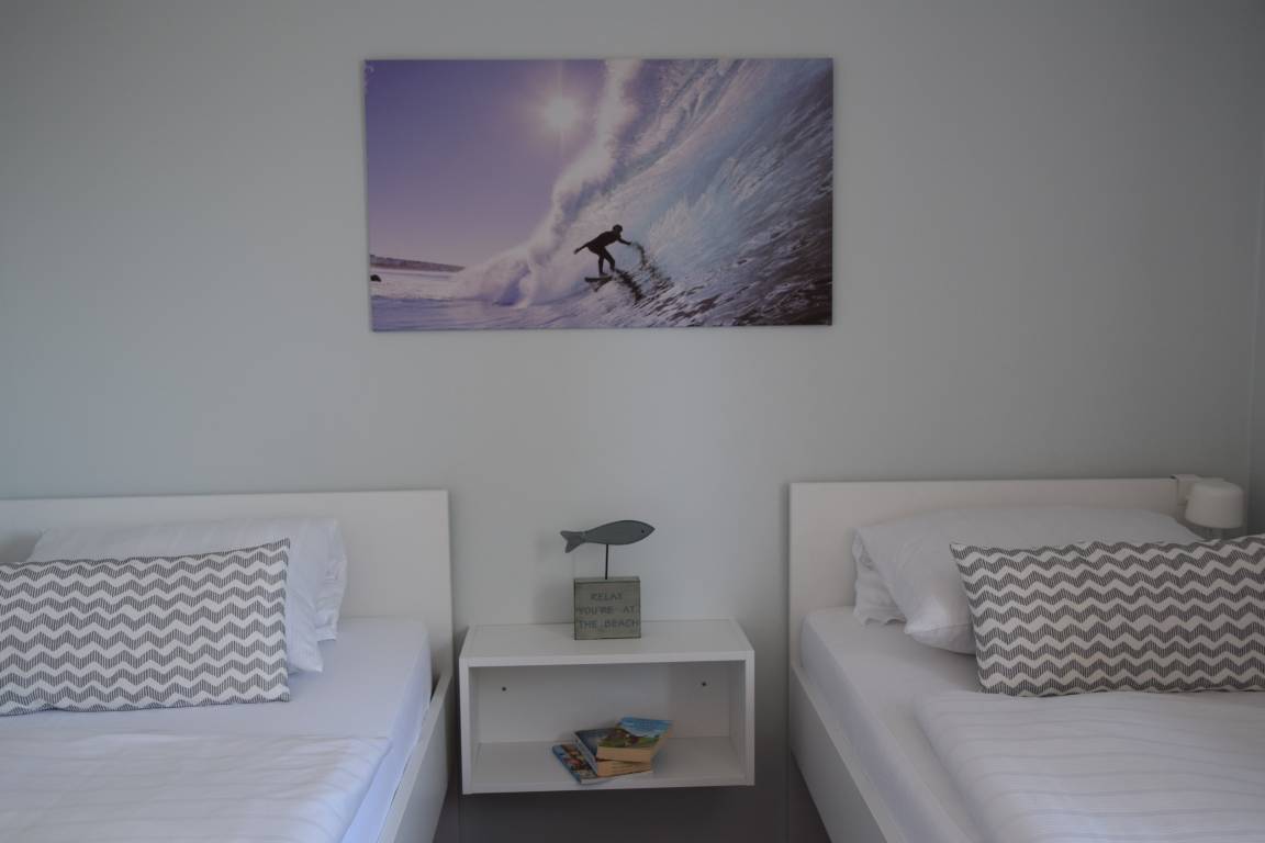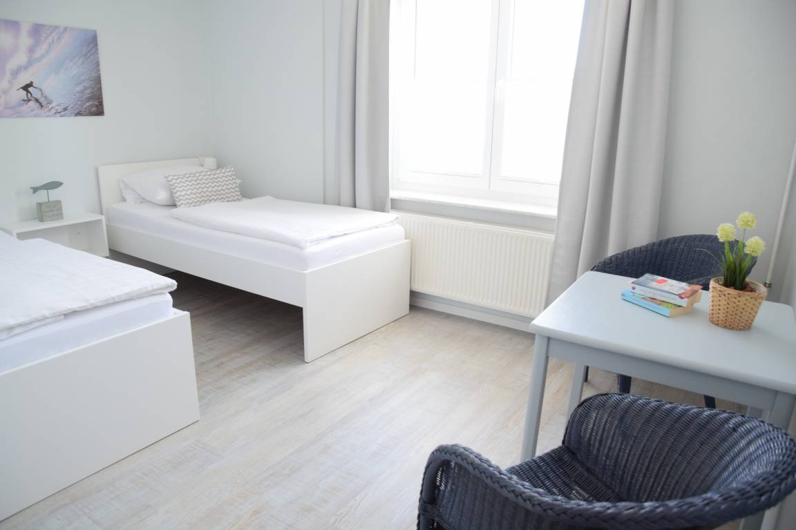Die Wohnung 4 verfügt über ein großes Schlafzimmer mit einem dreitürigen Kleiderschrank und ein Kinderzimmer mit zwei über Eck stehenden Einzelbetten, damit eine vierköpfige Familie bequem bei uns Urlaub machen kann.
