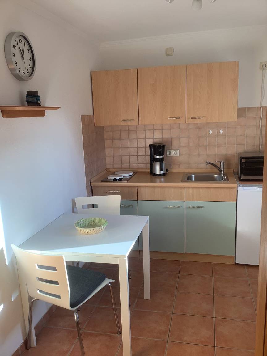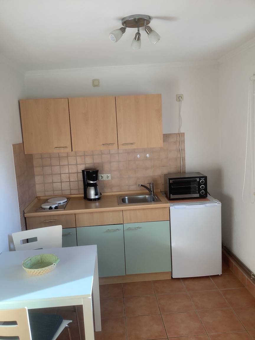 Die Ferienwohnung 3 ist ca. 30qm groß und teilt sich auf in ein kombiniertes Wohn-/Schlafzimmer, Duschbad und Küche. Außerdem gehört eine offene Terrasse dazu. Stellplätze sind vor dem Haus. Die Küche ist ausgestattet mit einem Zweiplattenherd, Kühlschrank, Gefrierfach, Mikrowelle, Toaster, Wasserkocher und Kaffeemaschine. Kurz um, eine gemütliche Ferienwohnung in absolut ruhiger Lage und ein großer Garten lädt zum verweilen ein. Nicht weit vom Strand können Sie hier Ihren Urlaub in vollen Zügen genießen.