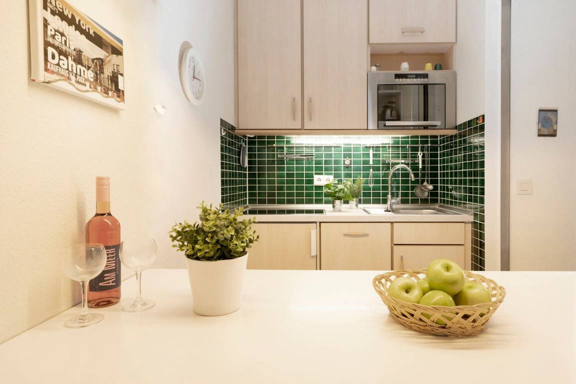 Diese 1-Zimmer-Ferienwohnung befindet sich im B-Gebäude der Apartmentanlage Berolina. Die Wohnung liegt in der 1. Etage und ist mit ca. 37 m² für max. 2 Erwachsene und 1 Kind geeignet.