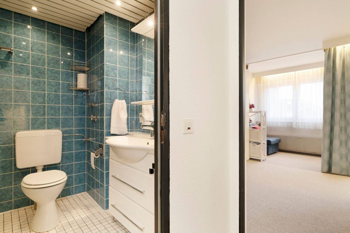 Wohn/ Schlafraum: 1 Schrankbett (2x 80x 200 cm), 1 Schlafsessel (80x200 cm), Kleiderschrank