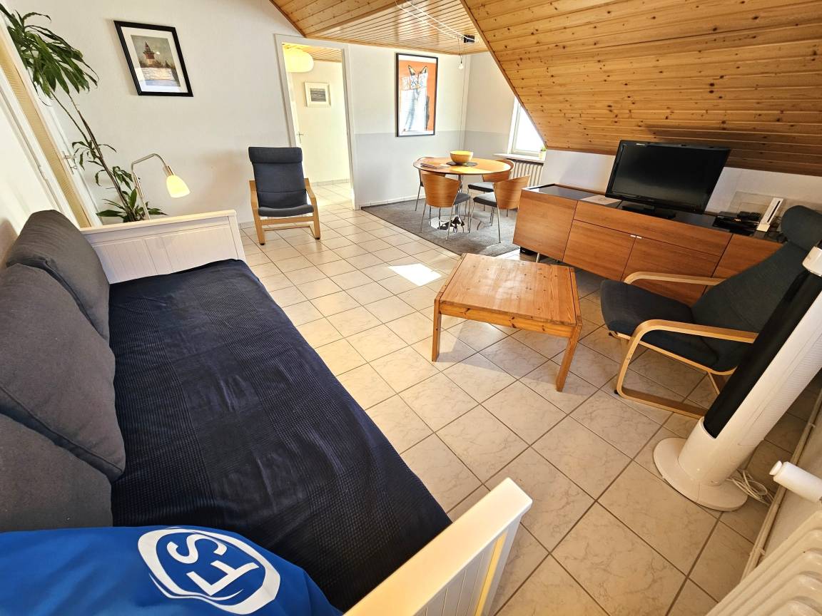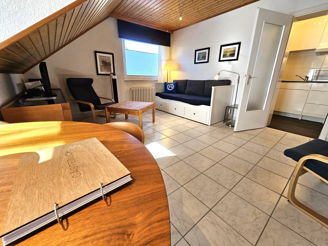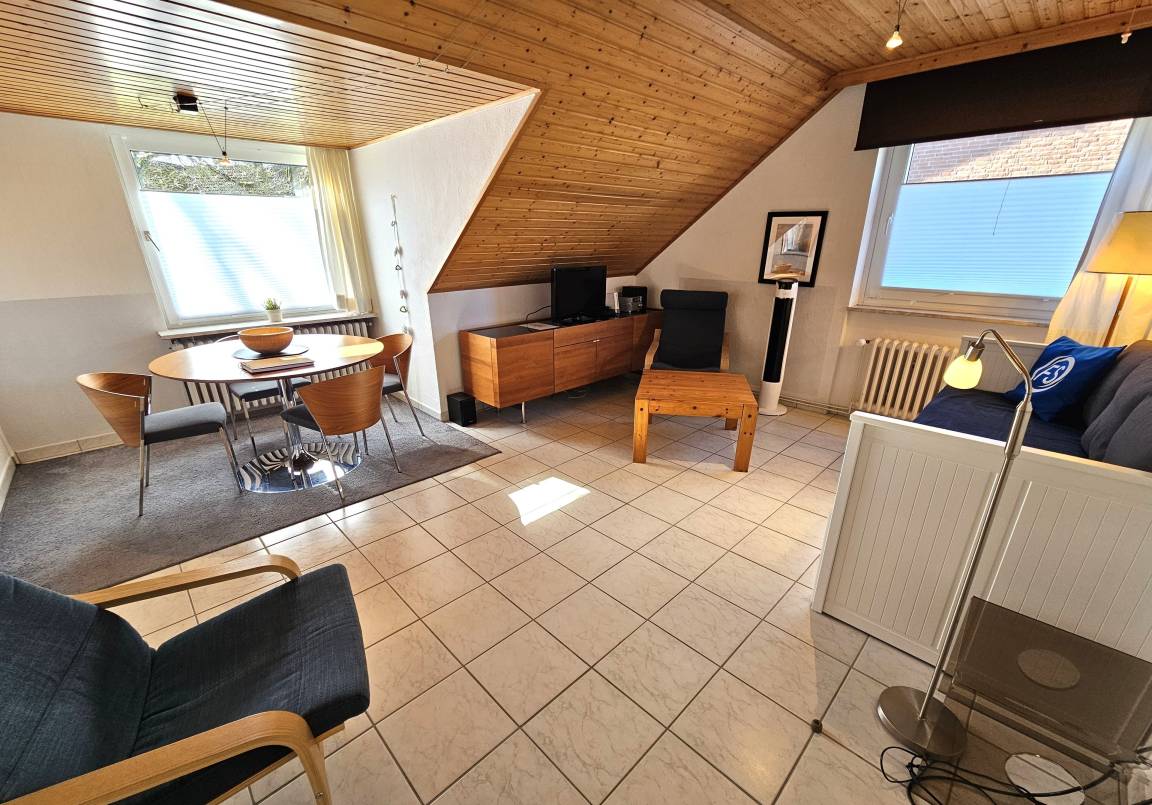 Das Objekt mit 3 Ferienwohnung befindet sich in der Ortsmitte von Dahme. Gemütliche kleine zwei Zimmer Wohnung im Dachgeschoss des Hauses. Hier finden bis zu vier Personen Platz. Das Schlafzimmer verfügt über ein modernes Boxspringbett für 2 Personen (1,40 x 2,00). Das Wohnzimmer wurde im November 2020 komplett neu eingerichtet. Verfügt über moderne Esszimmermöbel, sowie neue Sessel, Couchtisch und ein modernes Tagesbett, welches Sitzplatz für 3 bzw. Schlafplatz für 2 Personen bietet. Somit bietet die Wohnung Platz für die Familie zu viert, kann aber auch wunderbar von 2 Pärchen genutzt werden. Die Verdunkelungsrollos sorgen auch in dieser Wohnung für ruhigen Schlafkomfort. Das kleine, aber feine Bad wurde im November 2020 mit modernen Sanitärobjekten wie einer Dusche mit tiefem Einstieg und einem wandhängenden WC ausgestattet. Die moderne weiße Küchenzeile (neu im November 2020) befindet sich in einem Durchgangsraum, abgetrennt vom Wohnbereich.