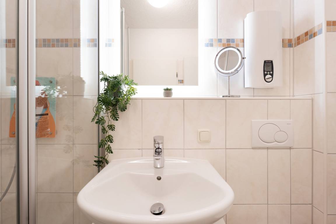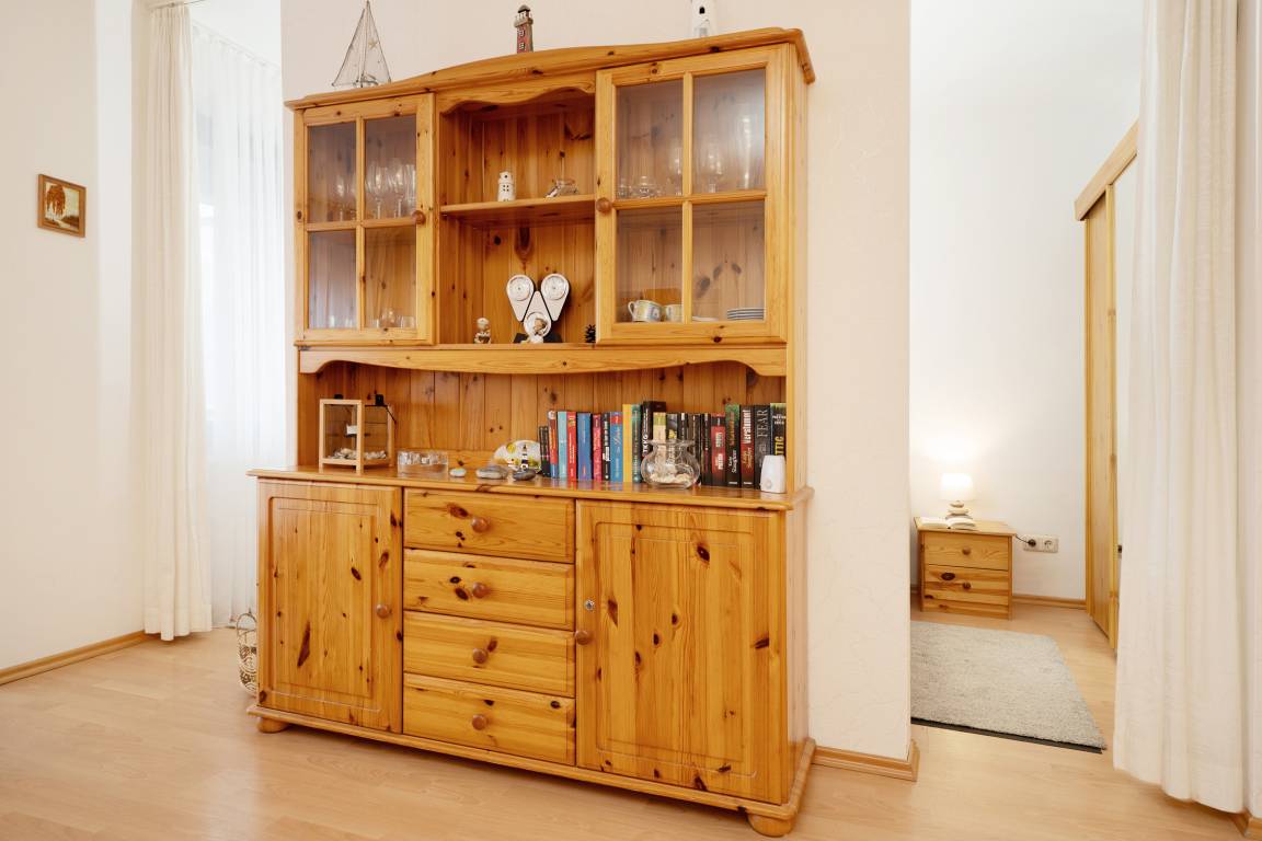 Schon beim Betreten der Erdgeschosswohnung empfängt Sie der helle und freundlich gestaltete Wohnbereich mit gemütlicher Sitzlandschaft, TV und WLAN – der perfekte Ort für entspannte Urlaubsabende. Von hier aus gelangen Sie direkt auf den rund 10 m² großen, gemütlich möblierten Balkon mit Nordwest-Ausrichtung - ideal für laue Abende an der Ostsee. Hier ist Grillen erlaubt (nur Elektro oder Gas), ein Gerät müsste mitgebracht werden. Die offene Küche ist modern und umfassend ausgestattet und bietet alles, was Sie für die Zubereitung Ihrer Mahlzeiten benötigen. Ein Essbereich lädt zum gemeinsamen Genießen ein. Die Ferienwohnung verfügt über zwei Schlafzimmer: eines mit komfortablem Doppelbett, das zweite mit zwei Einzelbetten – ideal für Familien oder Freunde. Das Badezimmer ist mit Dusche und WC ausgestattet und rundet den Wohnkomfort ab. Für die kleinen Gäste stehen ein Kinderhochstuhl, zwei Kinderreisebetten und ein Bettschutzgitter zur Verfügung.