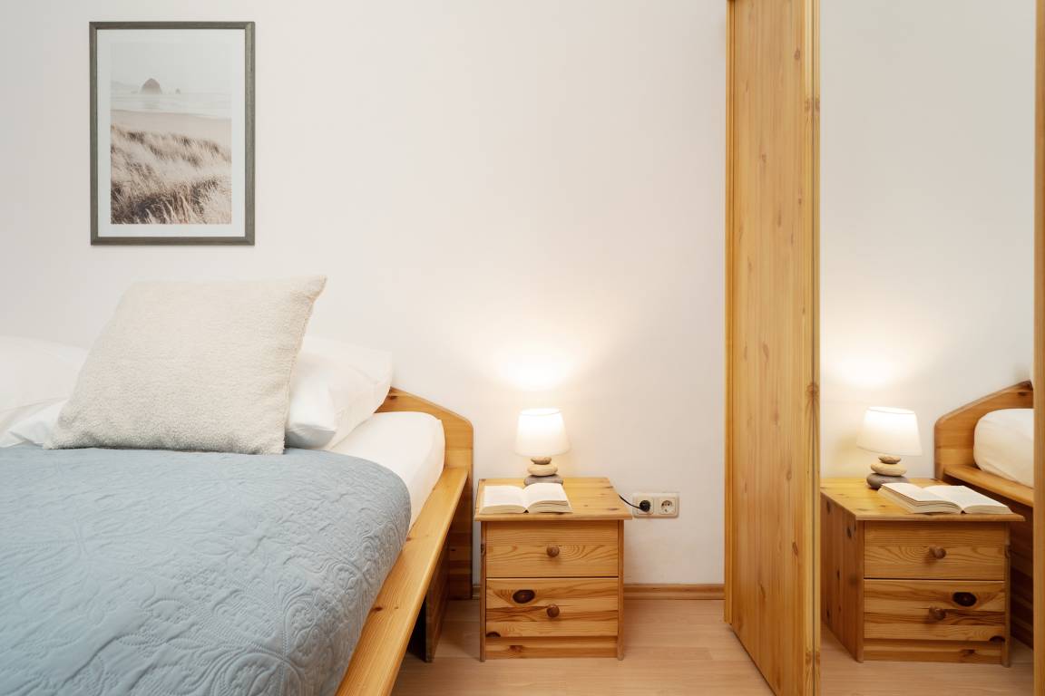 Schlafzimmer 1: 1 Doppelbett (2x 90x200 cm), Kleiderschrank, Verdunkelung: Rollladen, kein Platz für ein Babybett vorhanden