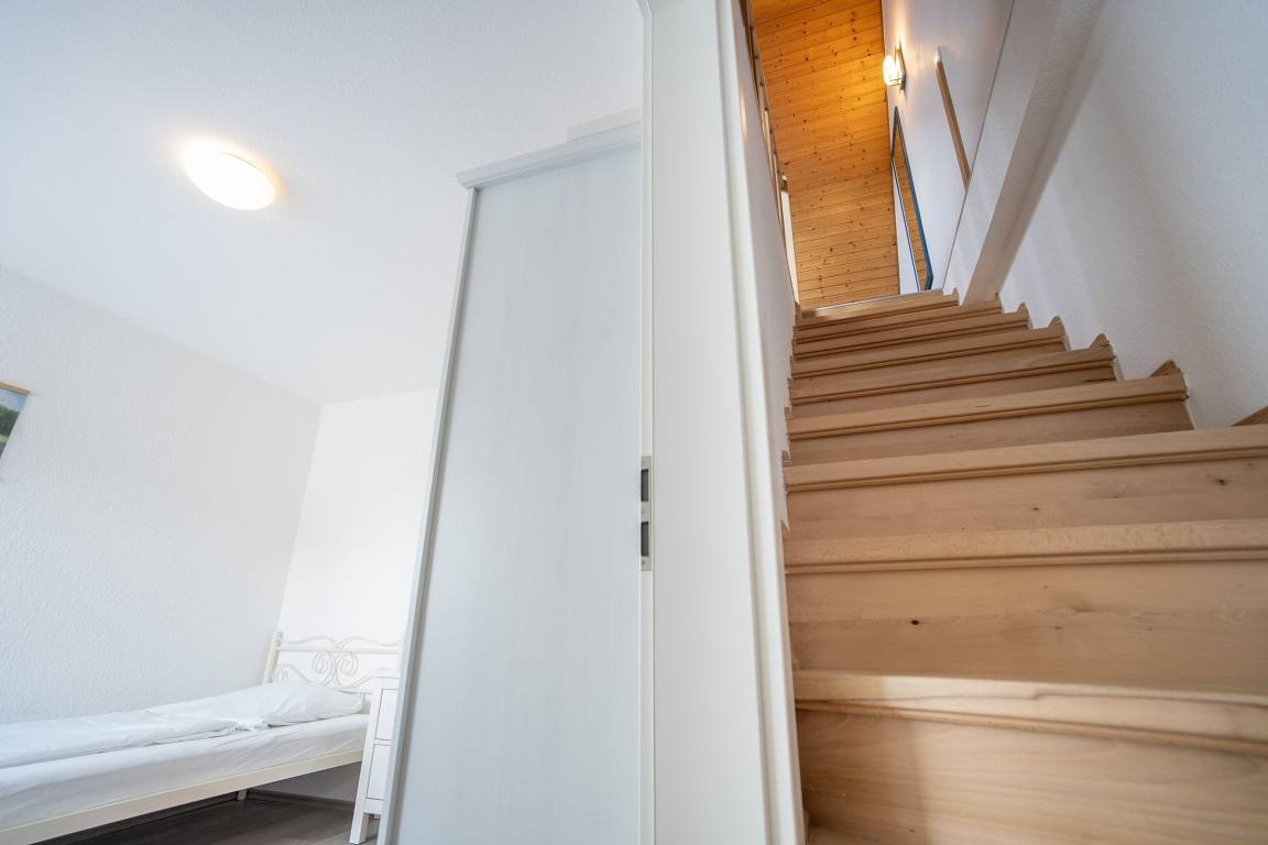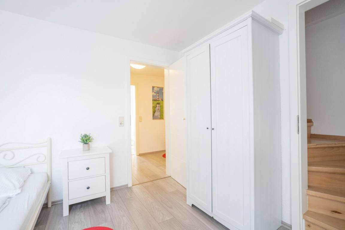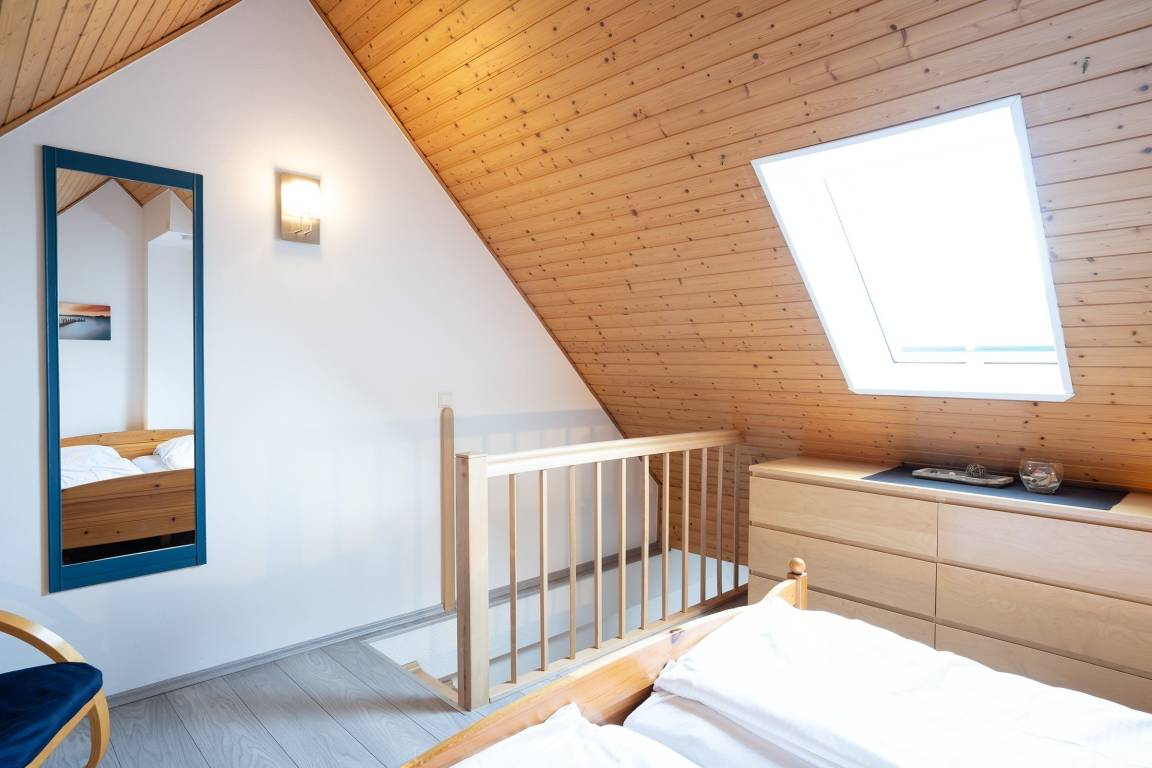 Zwei weitere, lichtdurchflutete Schlafräume finden Sie in der ersten Etage. Ebenso das Dachgeschoss ist ausgebaut und mit weiteren Schlafmöglichkeiten, sowie einem zweiten Duschbad mit WC ausgestattet.