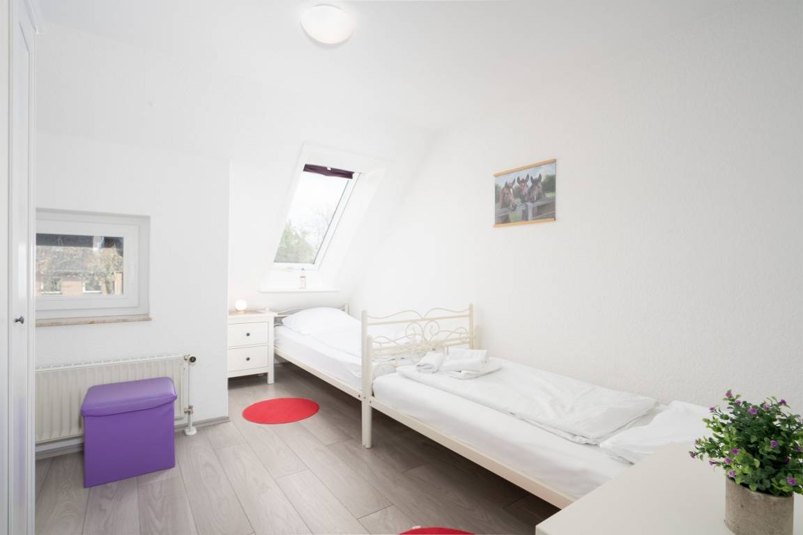 Schlafzimmer 2: 2 Einzelbetten (2x 90x200 cm), (1 OG), Kleiderschrank, Verdunkelung (Rollo)