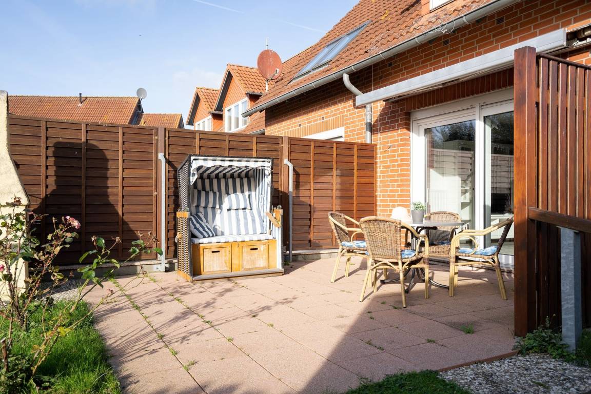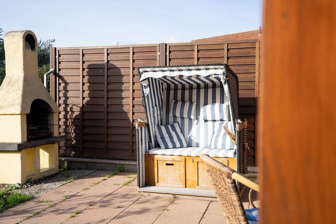 Lassen Sie den Tag auf der Terrasse mit eigenem Strandkorb entspannt ausklingen.