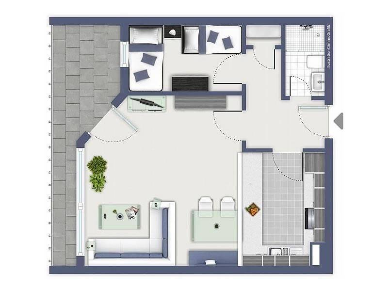 42 m² Ferienwohnung ∙ 1 Schlafzimmer ∙ 4 Gäste