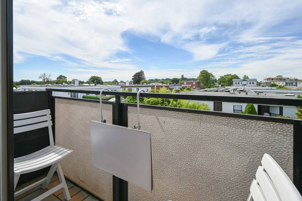 Klein, aber fein ist der französische Balkon: Er ist der perfekte Ort, um bei einem „Sundowner" den zauberhaften Sonnenuntergang zu bewundern. Die integrierte, praktische Küchenzeile bietet Ihnen alles, was Sie für ein gemütliches Frühstück oder kleine kulinarische Momente benötigen.