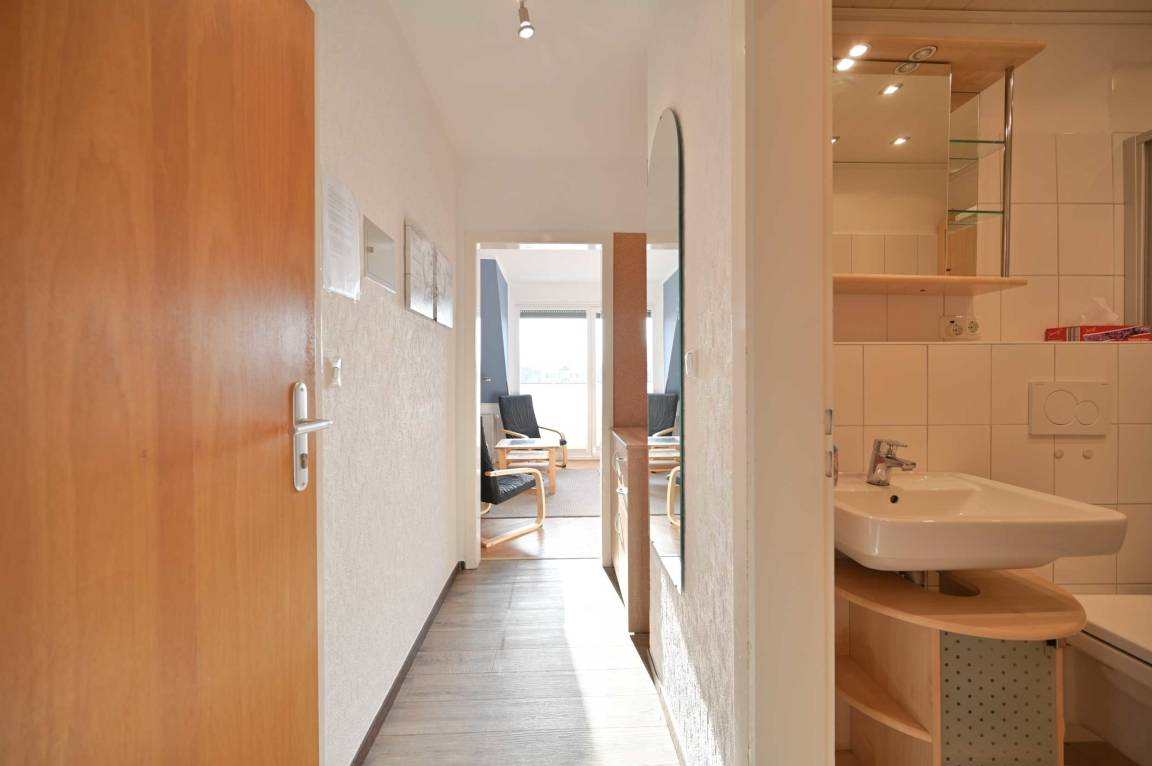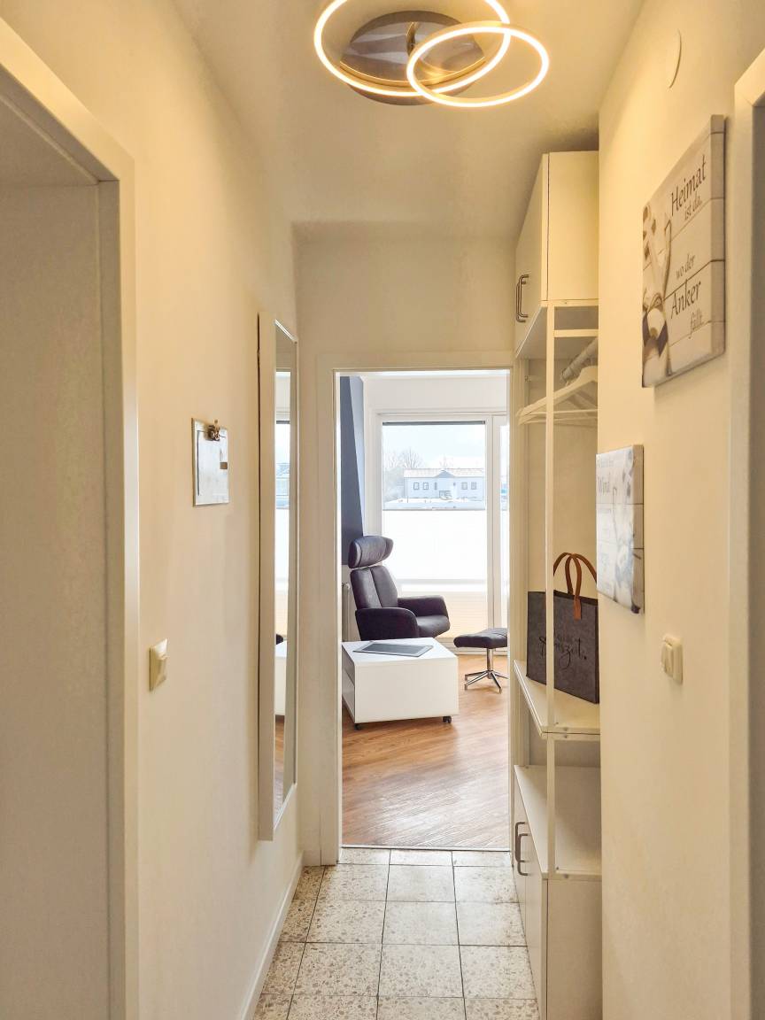 Schon beim Eintreten spüren Sie die frische Atmosphäre: Der Flur wurde neu gestaltet und alle Räume präsentieren sich mit hochwertigen, neuen Türen in elegantem Weiß, die der Wohnung ein besonders edles und helles Flair verleihen. Damit Sie jederzeit ungestört entspannen können, sind alle Fenster mit elektrischen Außenrollos ausgestattet – für perfekte Privatsphäre und einen erholsamen Schlaf zu jeder Tageszeit.
