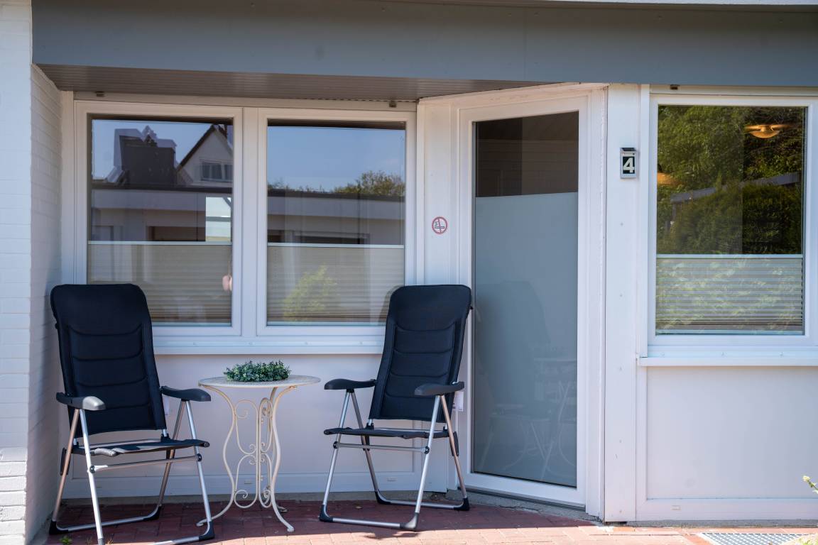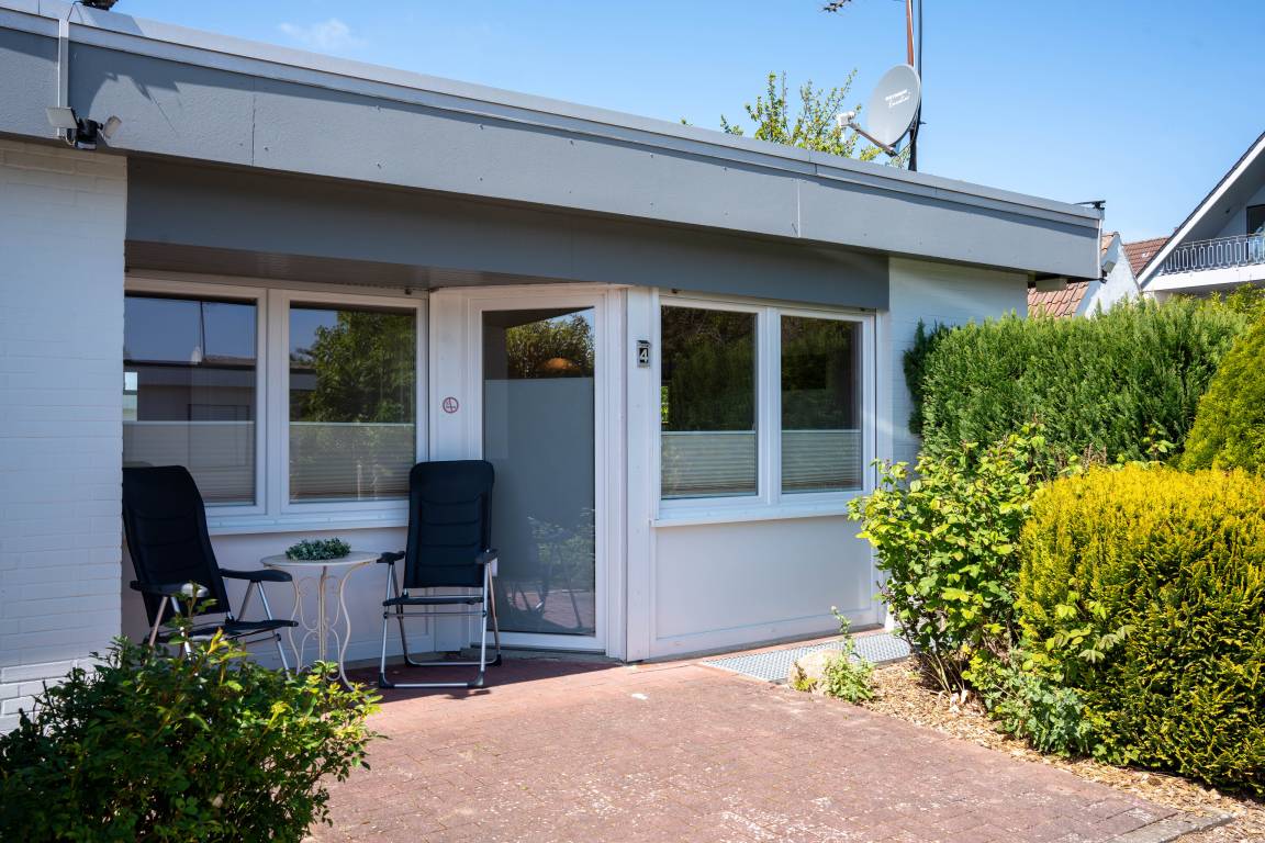 Der Bungalow verfügt über ein Schlafzimmer mit einem Doppelbett (180 x 190 cm). Die offene Küchenzeile ist mit einem Geschirrspüler ausgestattet. Im Wohnbereich können Sie auf 2 Sesseln entspannen. Die Einrichtung ist funktional, und es gibt eine Sitzecke für 2 Personen, perfekt für gemeinsame Mahlzeiten oder entspannte Abende. Im Außenbereich gibt es eine kleine Terrasse, wo Sie entspannen können.