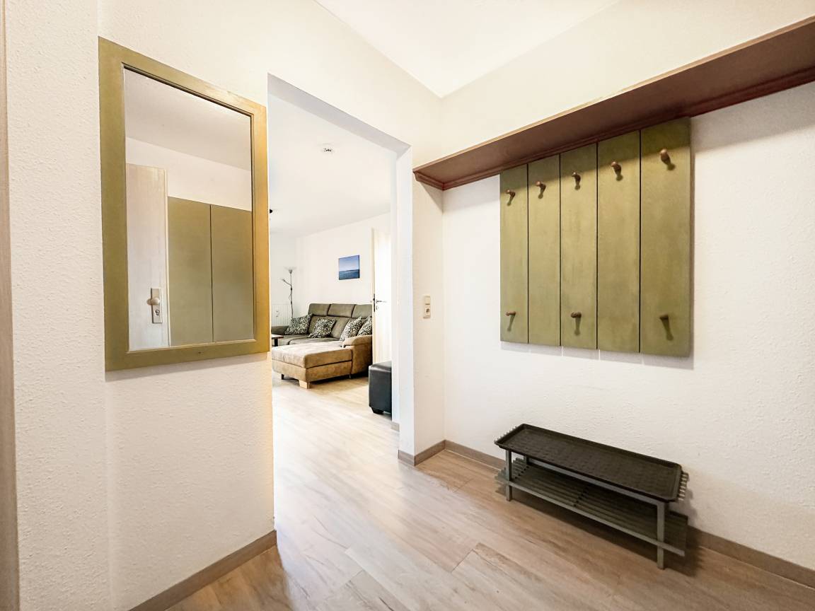Hier erwartet Sie auf ca. 57m² eine schicke Ferienwohnung für bis zu 5 Personen + Kleinkind mit W-LAN, einem Wohn-/Schlafzimmer mit offener Küche, einem Schlafzimmer mit Doppelbett, einem Schlafzimmer mit zwei Einzelbetten . Terrasse ist nach Norden ausgerichtet.
