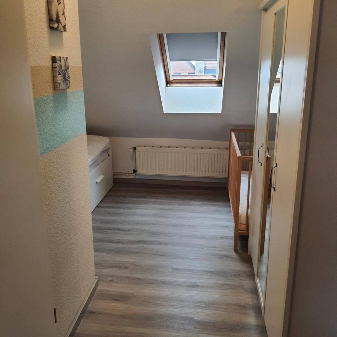 Im ersten Obergeschoss gibt es ein Schlafzimmer mit Doppelbett, kleinem Balkon und Flach-TV sowie ein zweites Schlafzimmer mit einem Tagesbett, das auf zwei Schlafplätze erweiterbar ist. Auch hier steht ein Dusche/WC zur Verfügung.