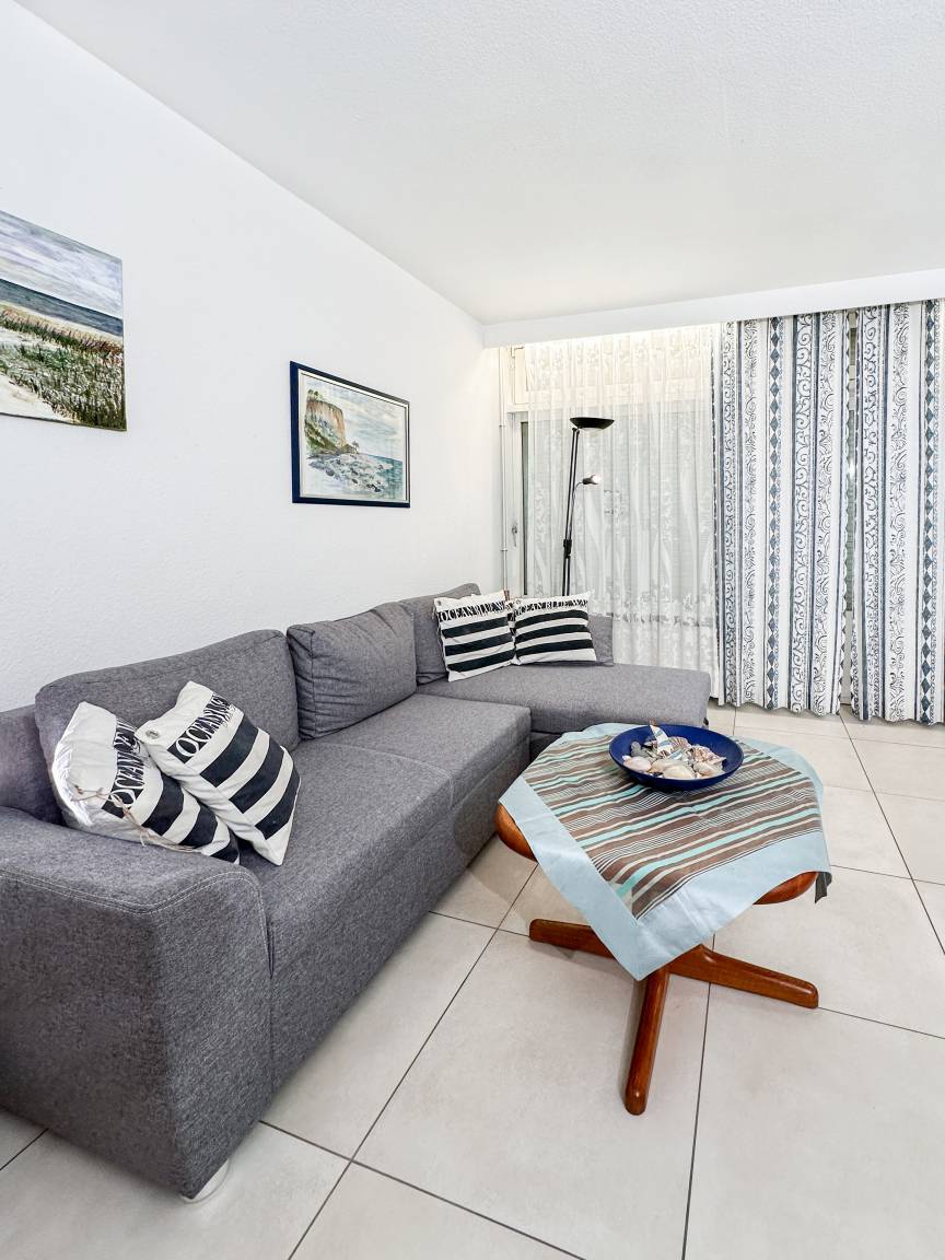 Herzlich Willkommen im Ferienhaus 3013 Marina Sol. Es ist ein ruhig gelegenes Endreihenhaus mit einer Wohnfläche von 70 m² verteilt auf drei Etagen mit drei Zimmern, die Platz für max. 4 Personen (+ Kleinkind) bieten. Zur Nutzfläche gehört eine eingewachsene großzügige Terrasse mit Terrassenmöbeln.