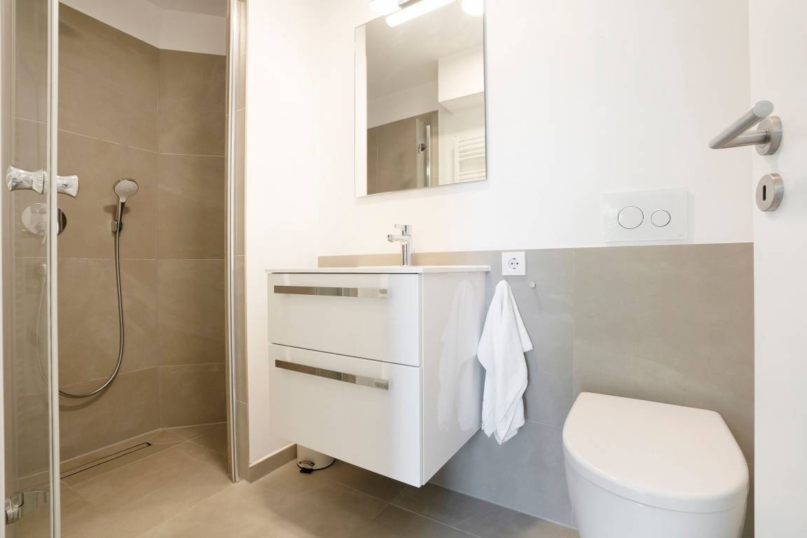 „Schöne neu ausgestattete Wohnung mit einem großen Garten, deshalb für einen Urlaub mit Hund super. Habe dank der sehr guten Boxspringbetten zum ersten Mal an der Ostsee, und wir waren schon sehr oft dort, keine Rückenschmerzen gehabt. Allerdings ist das 2. neue Bad sehr klein und das leider alte und große 1. Bad hat keine Duschtür, sodass das Wasser sich beim Duschen im Bad verteilt und immer aufgewischt werden muss. Außerdem sind keine Gardinen oder Rollos an der sehr schönen und großen Terassentür vorhanden, die Nachbarn also ins Wohnzimmer schauen können, was gerade bei Dunkelheit nicht angenehm ist. Sonst waren wir aber sehr zufrieden, insbesondere mit dem Team von Kraushaar, das sich nach einem Missverständnis mit der vorherigen Endreinigung sehr bemüht haben.“