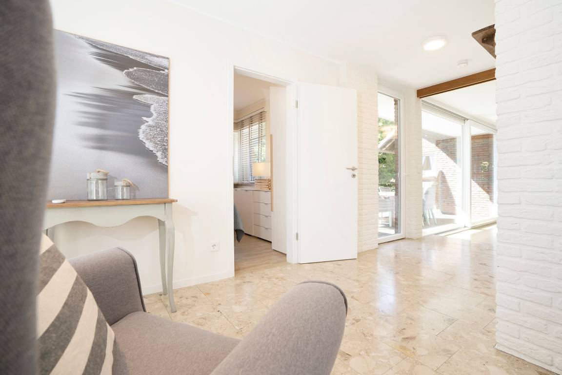 „Wir waren mit 3 Generationen für 1 Woche in der Ferienwohnung. Diese ist schön geräumig, toll eingerichtet, vor allem sehr sauber und für unsere Bedürfnisse perfekt aufgeteilt. Da wir mit unserem Baby angereist sind, war es besonders vorteilhaft, dass der Kinderwagen über den Garteneingang bis auf die Terrasse geschoben werden konnte, sodass man mit den sandigen Rädern nicht durch den Flur bzw. die Wohnung musste. Auf der Terrasse ist ein schöner großer Tisch mit gemütlichen Sesseln. Zur Strandpromenade läuft man ganz gemütlich 10 Minuten. Die Lage ist wirklich toll und sehr verkehrsberuhigt. Wir werden ganz bestimmt gerne wieder kommen:-)“