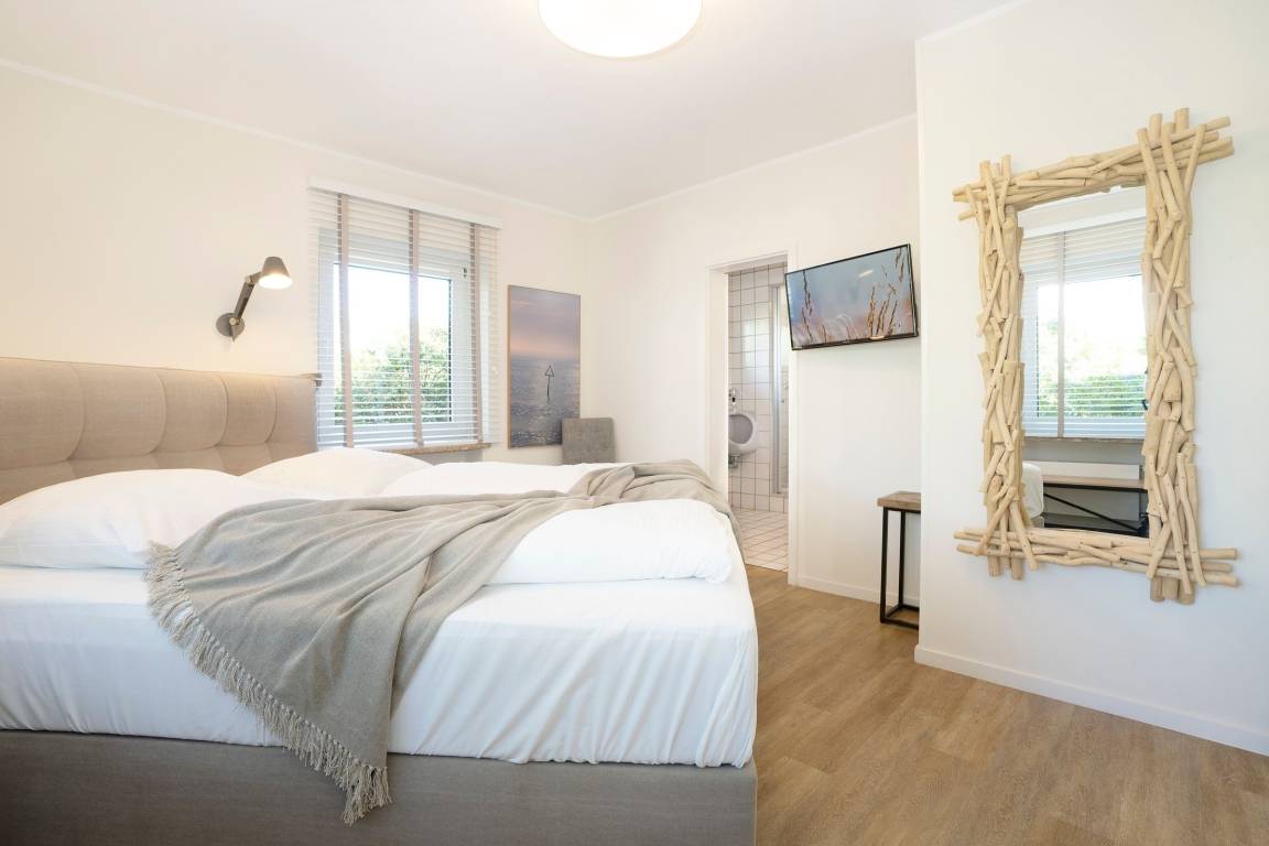 Erholsamen Schlaf finden Sie in den drei stilvollen Schlafzimmern mit komfortablen Boxspringbetten (2 Betten á 180x200 cm, 1 Bett á 140x200 cm). Zur Beseitigung der letzten Sandkörner nach einem langen Strandtag stehen Ihnen 2 Badezimmer mit Duschen zur Verfügung.