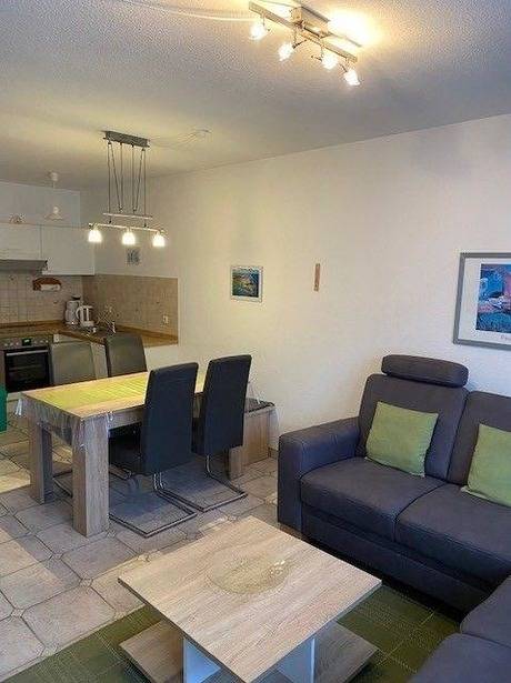 Der Wohnpark an der Seebrücke bietet ein komfortables Reihenhaus in der Saarstraße 18h, nur etwa 150 Meter vom Strand entfernt. Der Wohnraum ist großzügig gestaltet und umfasst eine Essecke sowie eine Küchenzeile, die mit modernen Annehmlichkeiten ausgestattet ist. Ein Farb-TV sorgt für Unterhaltung.
