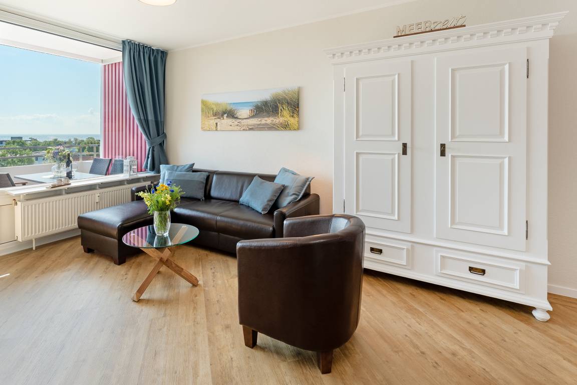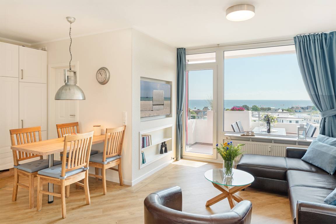 Hier können Sie sich rundherum wohlfühlen und haben einen traumhaften Meerblick! Genießen Sie Ihren Urlaub in dieser frisch renovierten und modern eingerichteten 2-Zimmer-Ferienwohnung in der 6. Etage in der beliebten Anlage Haus Berolina.