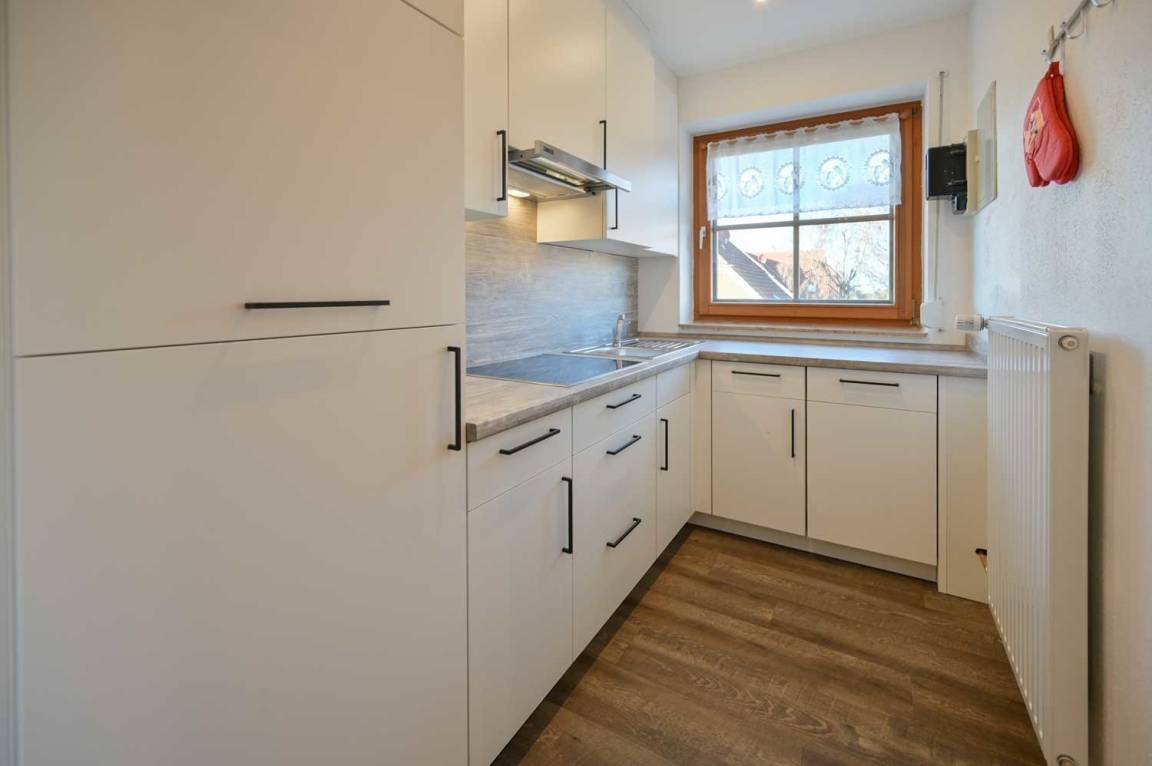 Die Küche ist dem Wohnbereich angeschlossen.