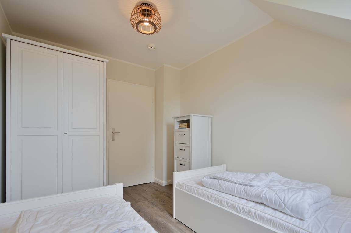 Weiterhin erreichen Sie über den Flur das neue, schöne Badezimmer mit Dusche /WC sowie das große Schlafzimmer mit Doppelbett, Nachttischen, 3-türigem Kleiderschrank, einer weiteren Kommode und genügend Platz für ein zusätzliches Kinderbett. Im gemütlichen Kinderzimmer befinden sich 2 Einzelbetten, ein großer Schreibtisch mit Stuhl und ein 2-türiger Kleiderschrank. Beide Schlafzimmer haben Verdunklungsgardinen.