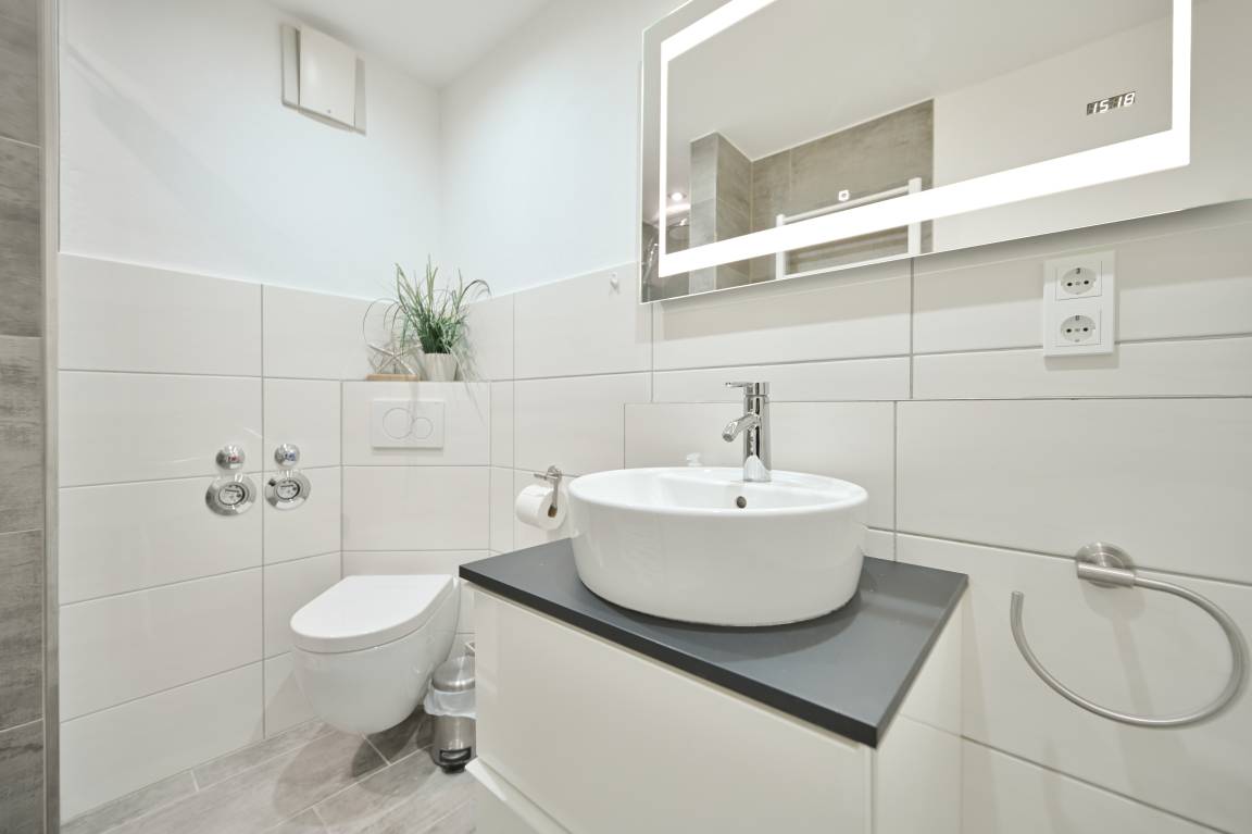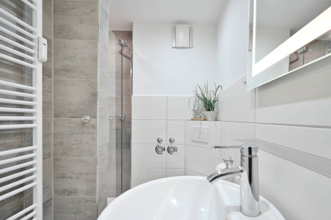 Zur Wohnung gehören weiterhin ein eigener Tiefgaragenstellplatz mit der Nummer 18 sowie ein gemeinschaftlicher Abstellraum für Fahrräder und Bollerwagen. Ebenso können die Waschmaschine sowie der Trockner mitbenutzt werden (Münzbetrieb).