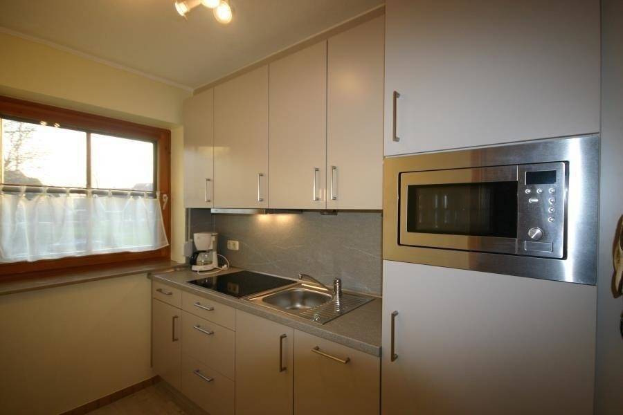 In dieser Ferienwohnung befindet sich ein gemütliches Wohnzimmer mit Sitzecke (Schlafsofa), TV und einen Essbereich. Die Küche ist praktisch eingerichtet mit ausreichendem Geschirr, Besteck und Gläser. Zum Inventar gehören auch ein Wasserkocher, Toaster, Kaffeemaschine, Geschirrspüler und Mikrowelle. Das Schlafzimmer ist mit einem Doppelbett (2x90x200cm) und großzügigem Kleiderschrank ausgestattet, im zweiten Schlafzimmer stehen zwei Einzelbetten (90x200cm) und ein Kleiderschrank (100cm breit). Das Badezimmer mit Fenster hat eine Dusche und WC. Hier steht auch die Waschmaschine.
