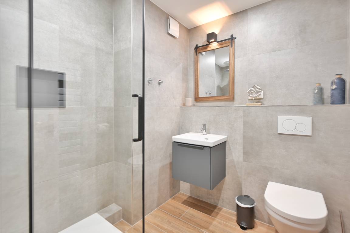 Außerdem verfügt die Ferienwohnung über ein Bad mit Dusche und WC.