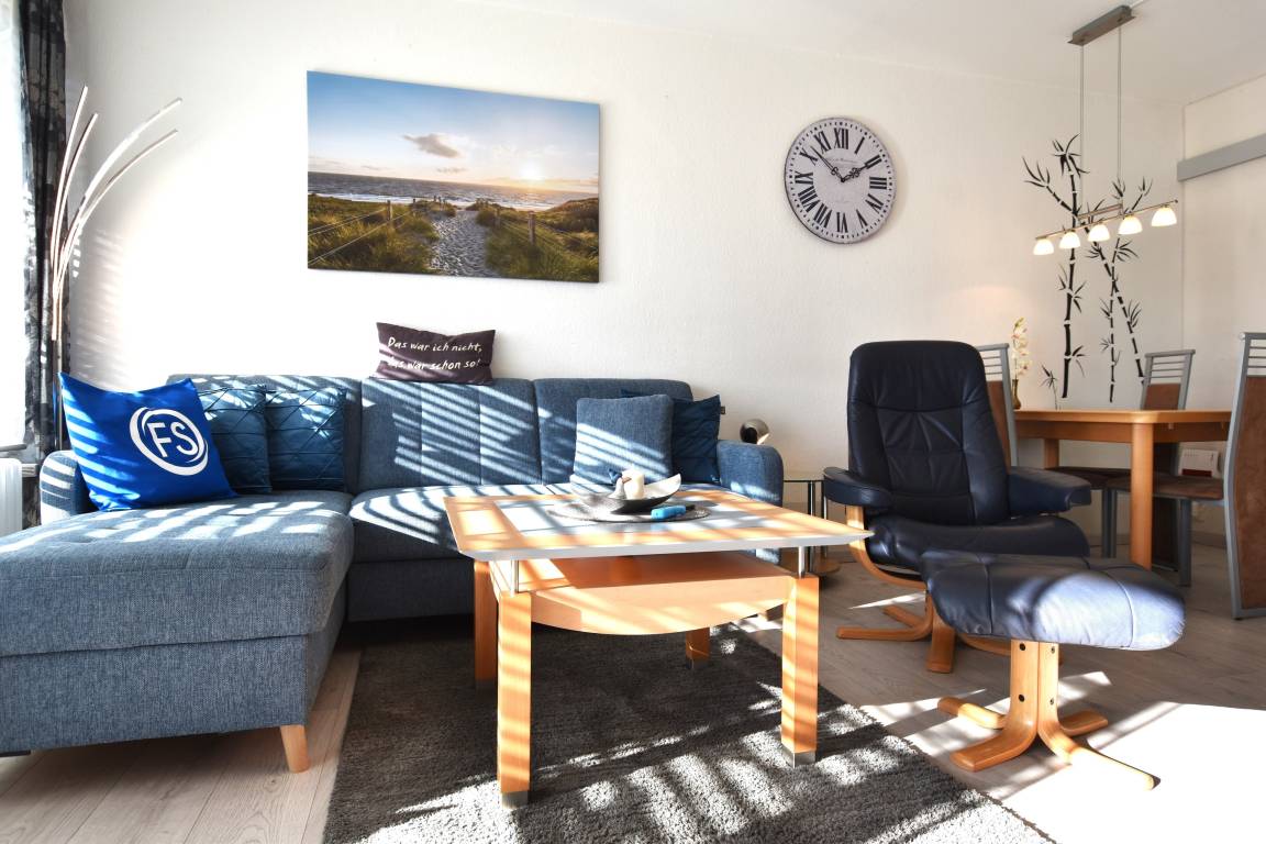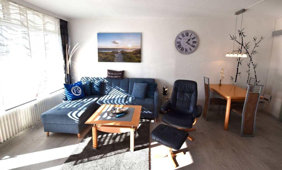 Willkommen in dieser gemütlichen und liebevoll eingerichtetetn zwei Zimmer Ferienwohnung "6002 Sonnenschein". Sie bietet Ihnen im 1.OG auf 40m² Platz für max. 4 Personen incl. Kind (max 6 Jahre) und verfügt über einen Südbalkon mit Balkonmöbeln.
