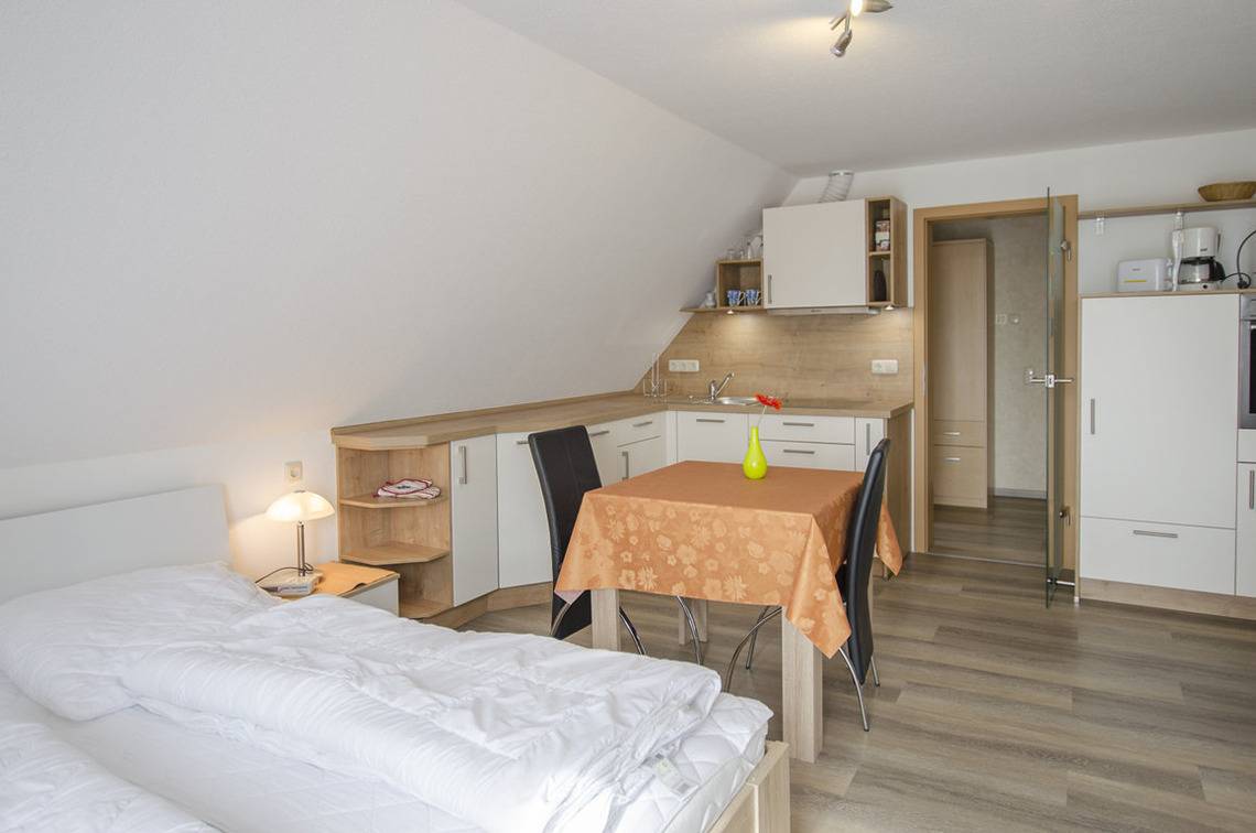 In dieser Ferienwohnung haben 2 Erwachsene auf 40m² genügend Platz zum erholen.