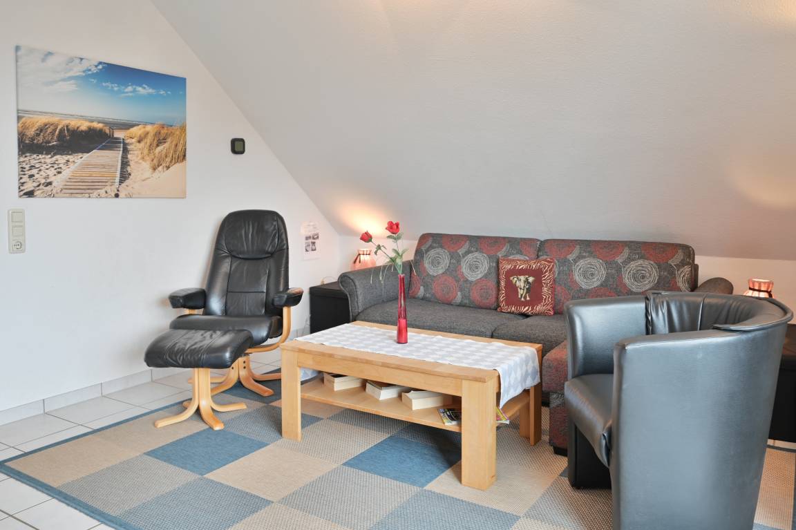 Im Wohnbereich der Fewo steht ein Full-HD-Flachbildschirm mit DTV digitalem Fernsehen für Gäste bereit. Zudem steht ein Fernsehsessel zur Verfügung.