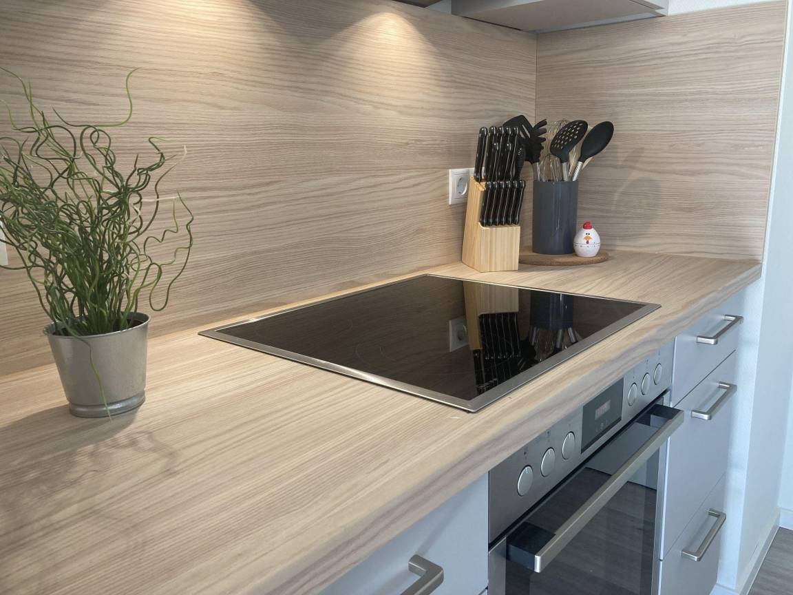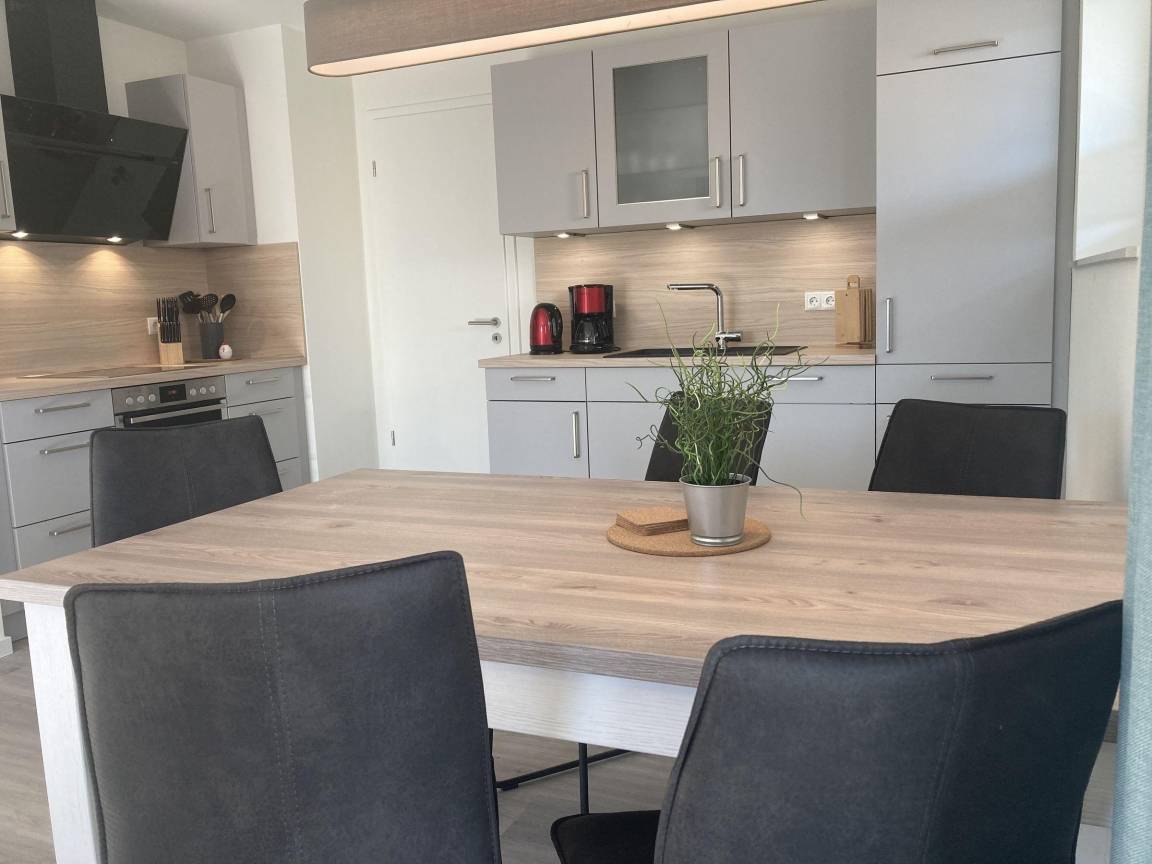 Die Ferienwohnung bietet Platz für vier Personen und umfasst zwei Schlafzimmer, eine moderne Küche sowie ein Bad mit Sauna. Anreise erfolgt nach Schlüsselübergabe, PKW-Stellplatz kann erst danach genutzt werden. Haustiere sind nicht erlaubt, Grillen nur mit Elektrogrill gestattet.
