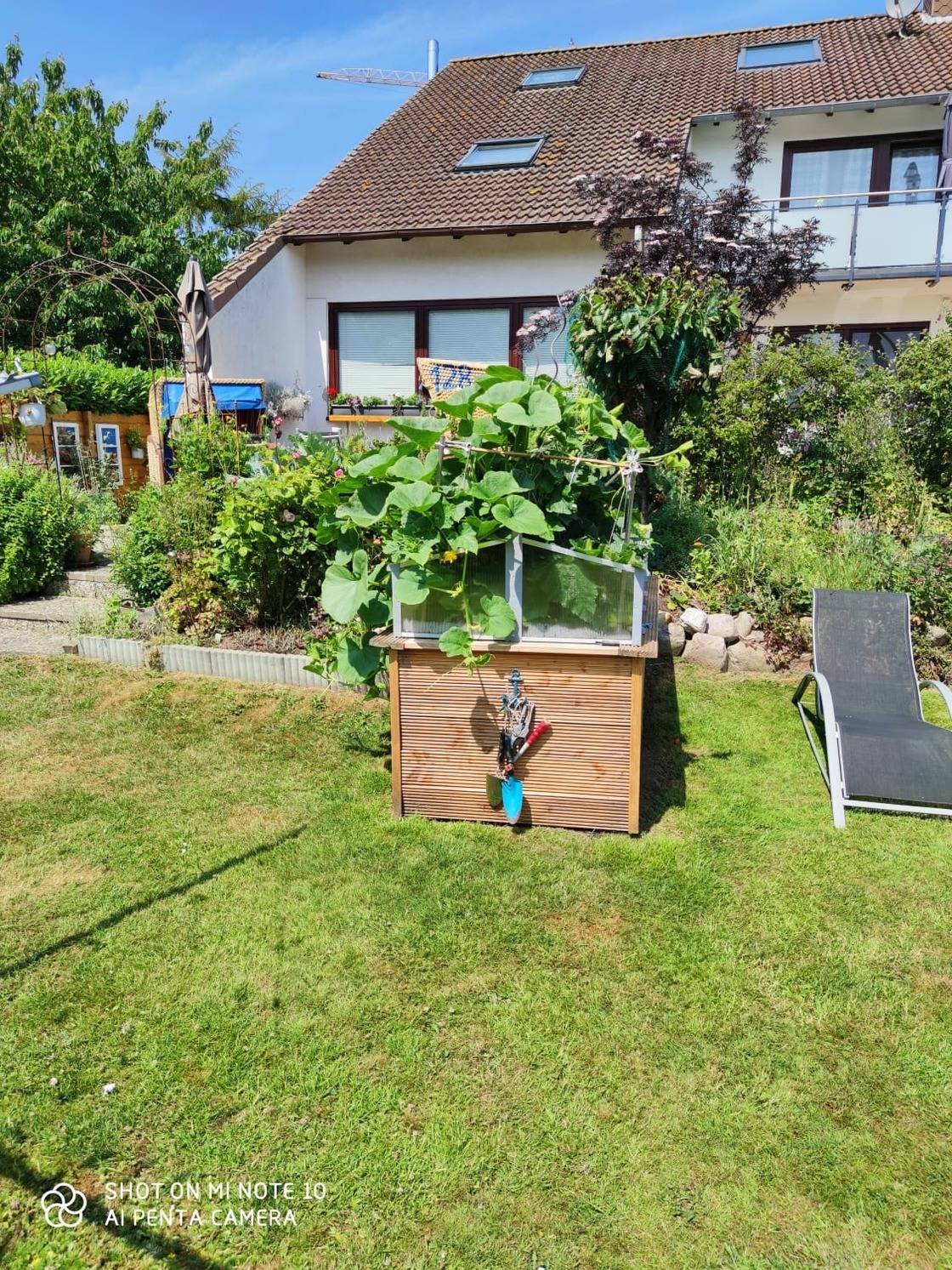 Ihr Pkw kann vor der Haustür abgestellt werden und Fahrräder können im Gartenhäuschen untergebracht werden.