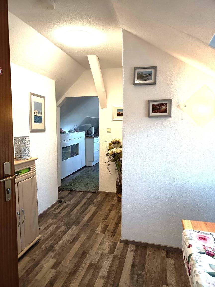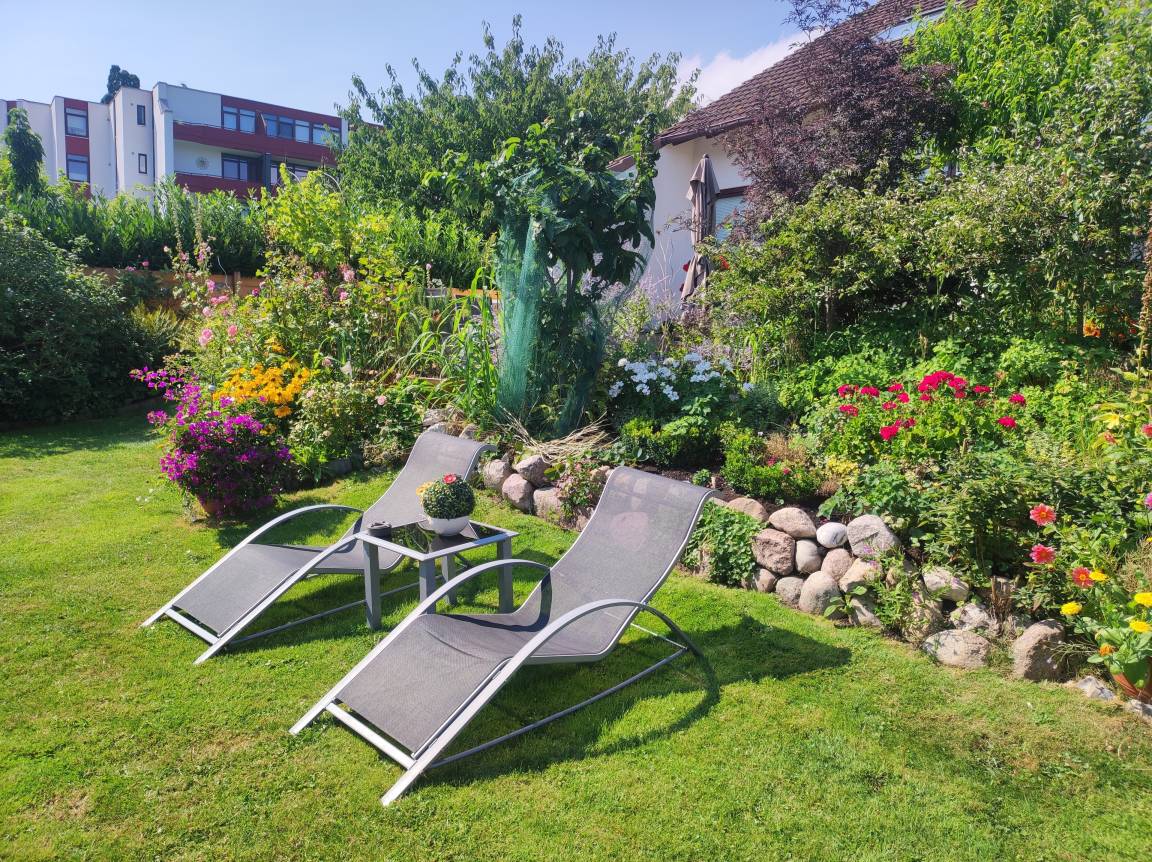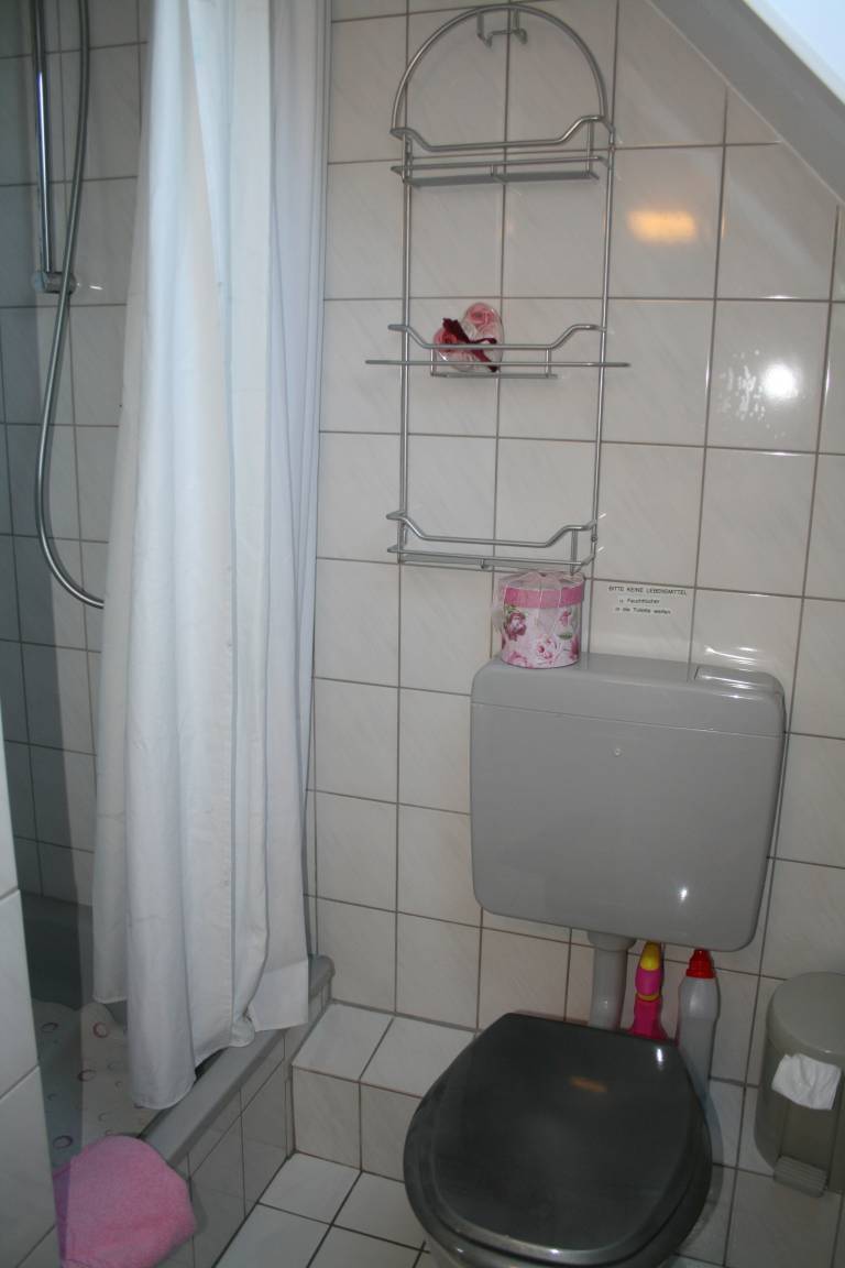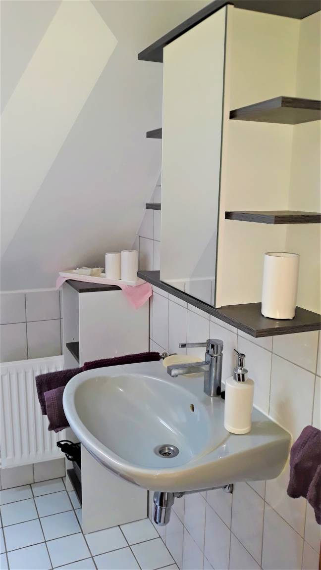 Das Bad ist mit einer Dusche, Waschbecken und einem WC und einem großen Fenster ausgestattet. Für Sie steht bereit: Ein Haar Fön, 1 Rolle Toilettenpapier, Kosmetiktücher, Ohrenstäbchen, Reinigungspads, Küchenrolle sowie Badreiniger. Die Ferienwohnung ist auf 2 Personen ausgerichtet. Bei Kleinkindern unter 7 Jahren bitten wir um Absprache. Die Ferienwohnung ist eine Allergiker- und Nichtraucherwohnung. Haustiere sind nicht erlaubt. Die Treppe ist für Menschen mit körperlichen Beeinträchtigungen ungeeignet. Der schön angelegter Garten bietet mehrere Sitz- und Liegemöglichkeiten. In unserem ruhigen Haus bekommen Sie die absolute Entspannung. Auch in den Wintermonaten mit Sauna und Solarium, lassen sich die kalten Tage, erholsam verbringen.