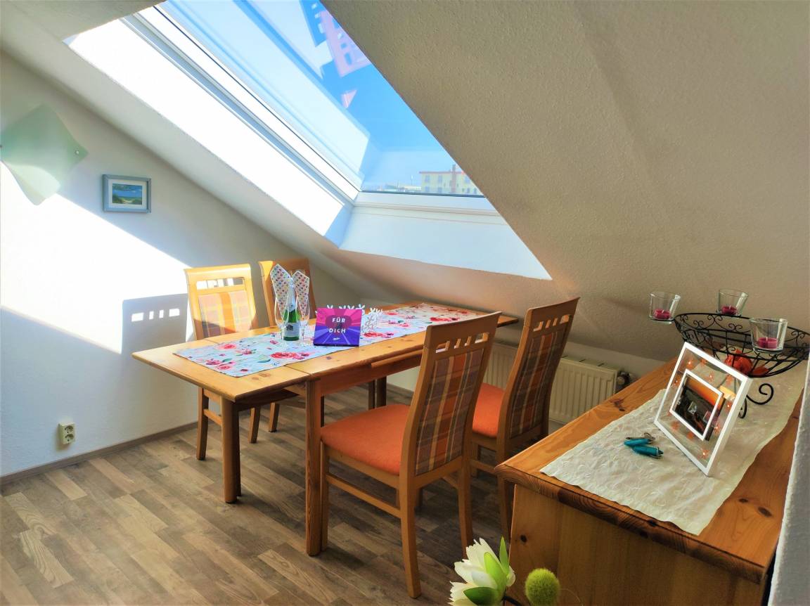 Unsere Strandnahe und ruhige Ferienwohnung Nr. 1 "Seeblick" befindet sich in der 2. Etage und bietet genügend Raum, um sich wohl zu fühlen. Sie ist hell, freundlich und geschmackvoll eingerichtet. Sie bietet aus allen Räumen einen herrlichen Blick zur Ostsee. Ein Schlafzimmer mit Doppelbett, ein großzügiges Esszimmer sowie das große geräumige Wohn-/Esszimmer mit Einbauküche und einem kleinen Badezimmer mit DU/WC wurden mit viel Liebe zum Detail eingerichtet. Ein verspielter und gepflegter Garten mit vielen Rückzugsmöglichkeiten laden zum Entspannen ein. Ein komfortables Schlafen wird geboten. Dazu dienen gute Bandscheibenmatratzen und eine große Anzahl an Kopfkissen und Zudecken. Die Küche bietet einen Glas-Keramik- Herd, Kühlschrank mit Gefrierfach, Backofen, Spülmaschine, Mikrowelle und allen notwendigen Elektrogeräten sowie einer großzügigen Haushaltsbestückung. Eine Grundausstattung zum Start mit Reinigungsartikel für Küche und Bad stehen für Sie bereit.